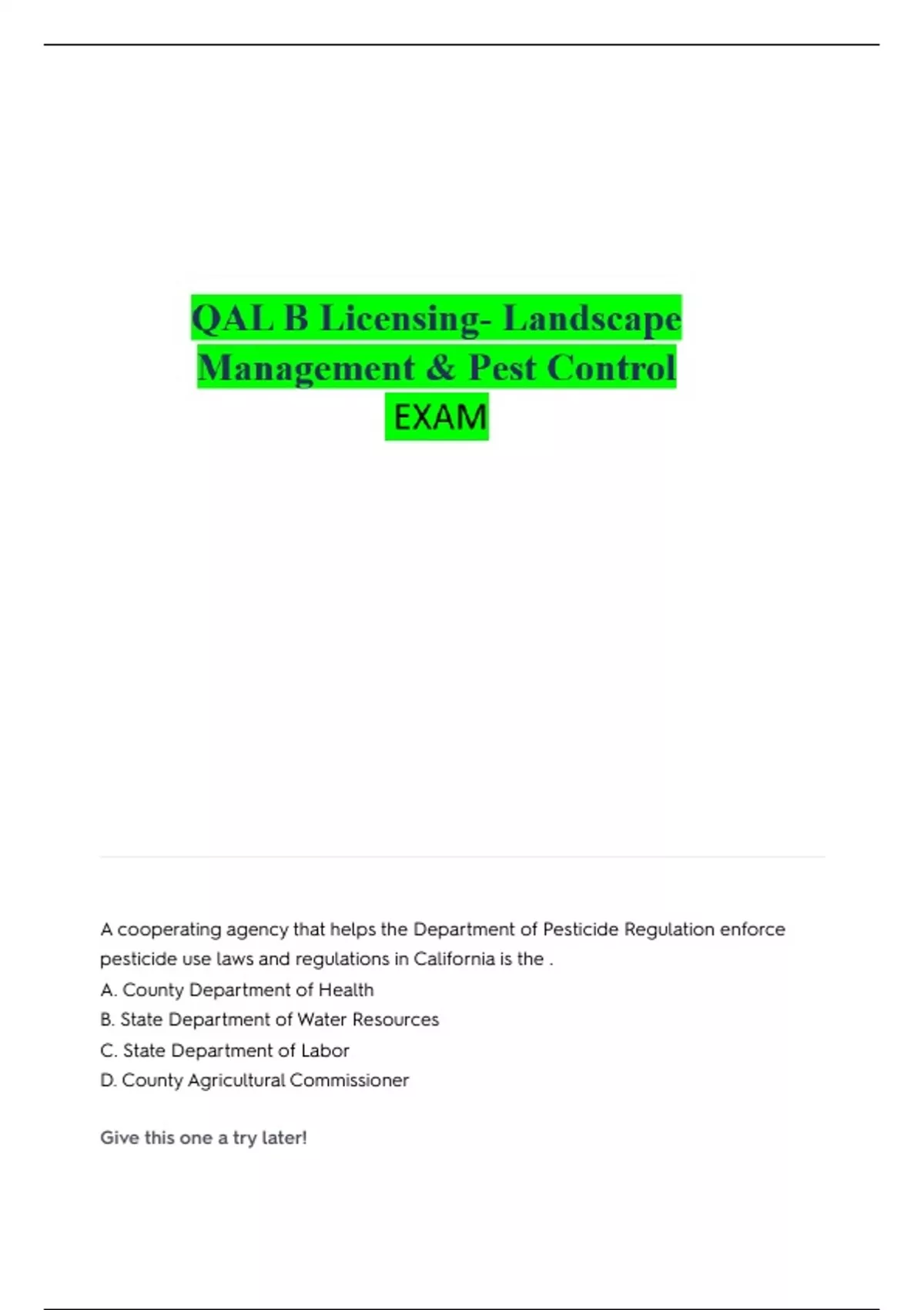 QAL EXAMS ALL WITH CORRECT ANSWERS