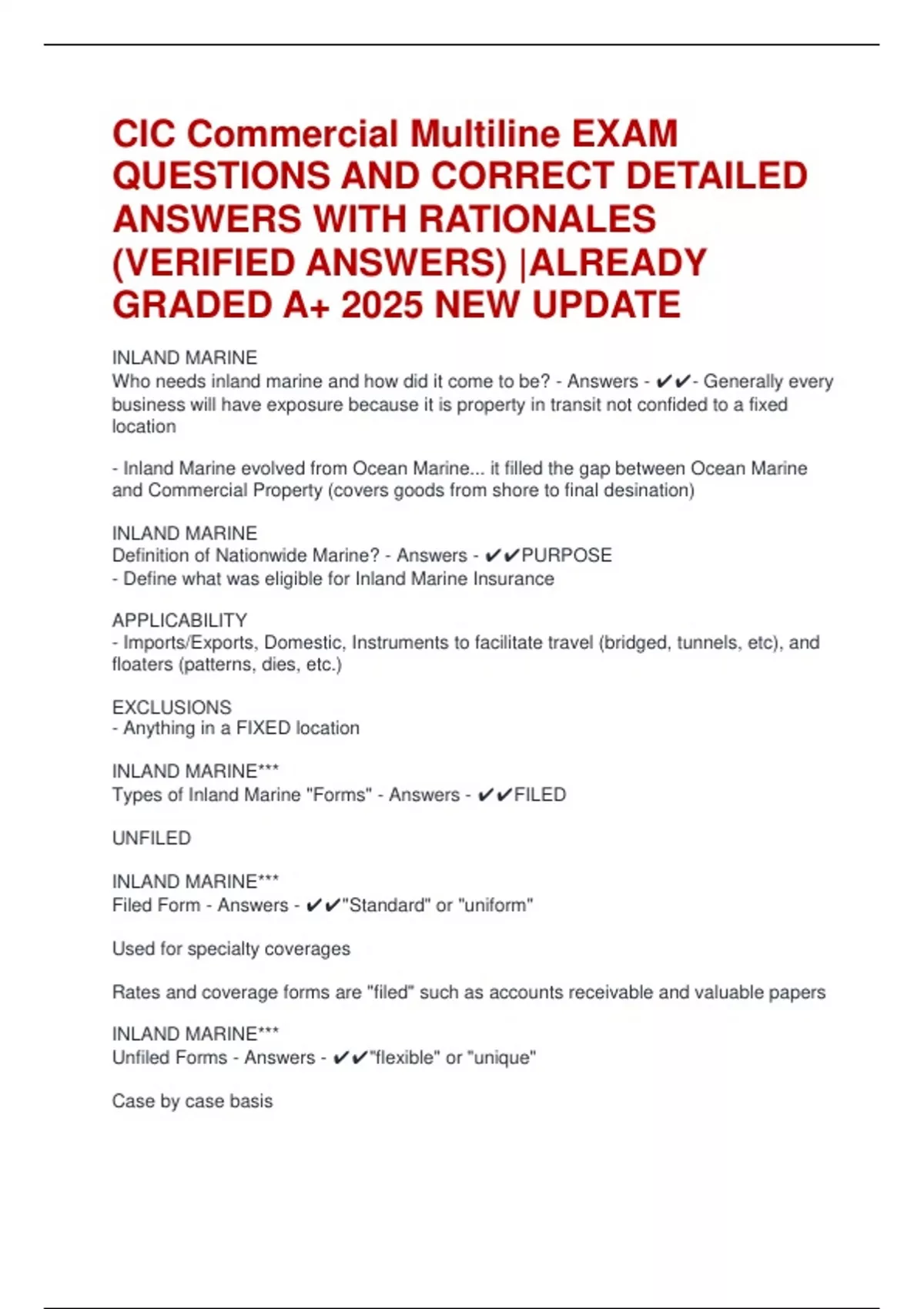 1 Exam (elaborations) CIC Commercial Multiline EXAM QUESTIONS AND CORRECT DETAILED ANSWERS WITH RATIONALES (VERIFIED ANSWERS) |ALREADY GRADED A+ 2025 NEW UPDATE 2 Exam (elaborations) CIC Commercial Multiline EXAM QUESTIONS WITH CORRECT DETAILED ANSWERS WITH RATIONALES (VERIFIED ANSWERS) |ALREADY A+ PASS 2025 NEW UPDATE 3 Exam (elaborations) CIC C