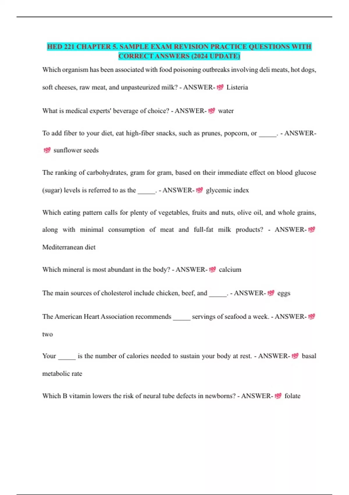 HED MULTIPLE EXAM REVISION QUESTIONS AND CORRECT ANSWERS (ALREADY GRADED A+) (2024 UPDATE)
