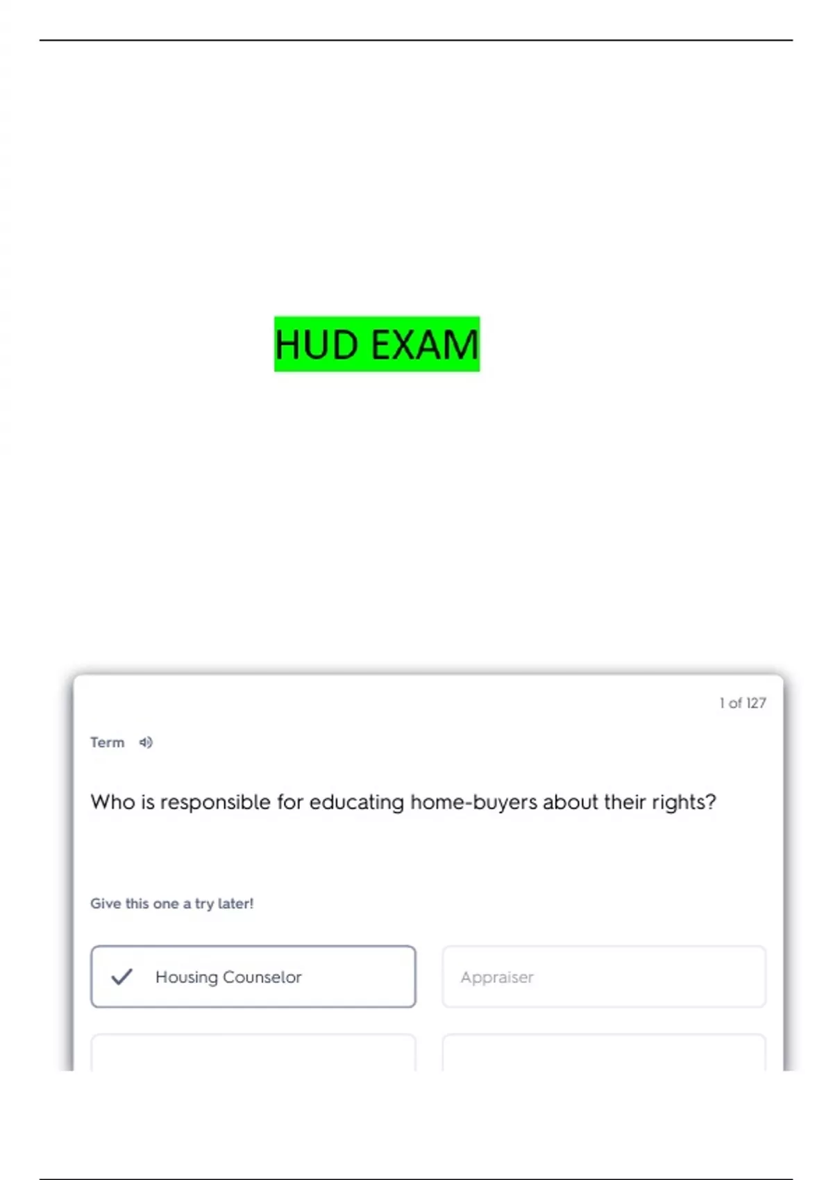HUD TEST 1 QUESTIONS WITH COMPLETE ANSWERS