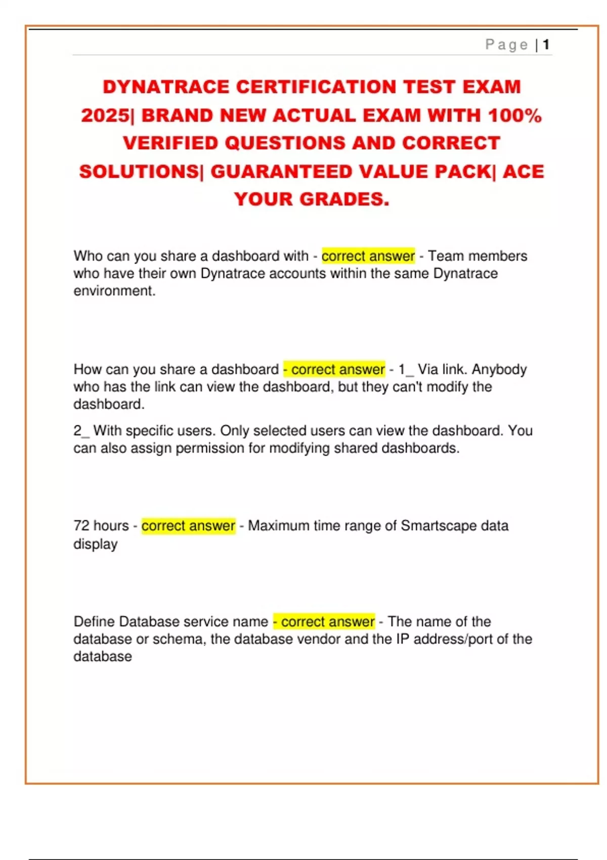 DYNATRACE EXAM PACKAGE DEAL 2025/GUARANTEED VALUE PACK/ACE YOUR GRADES.