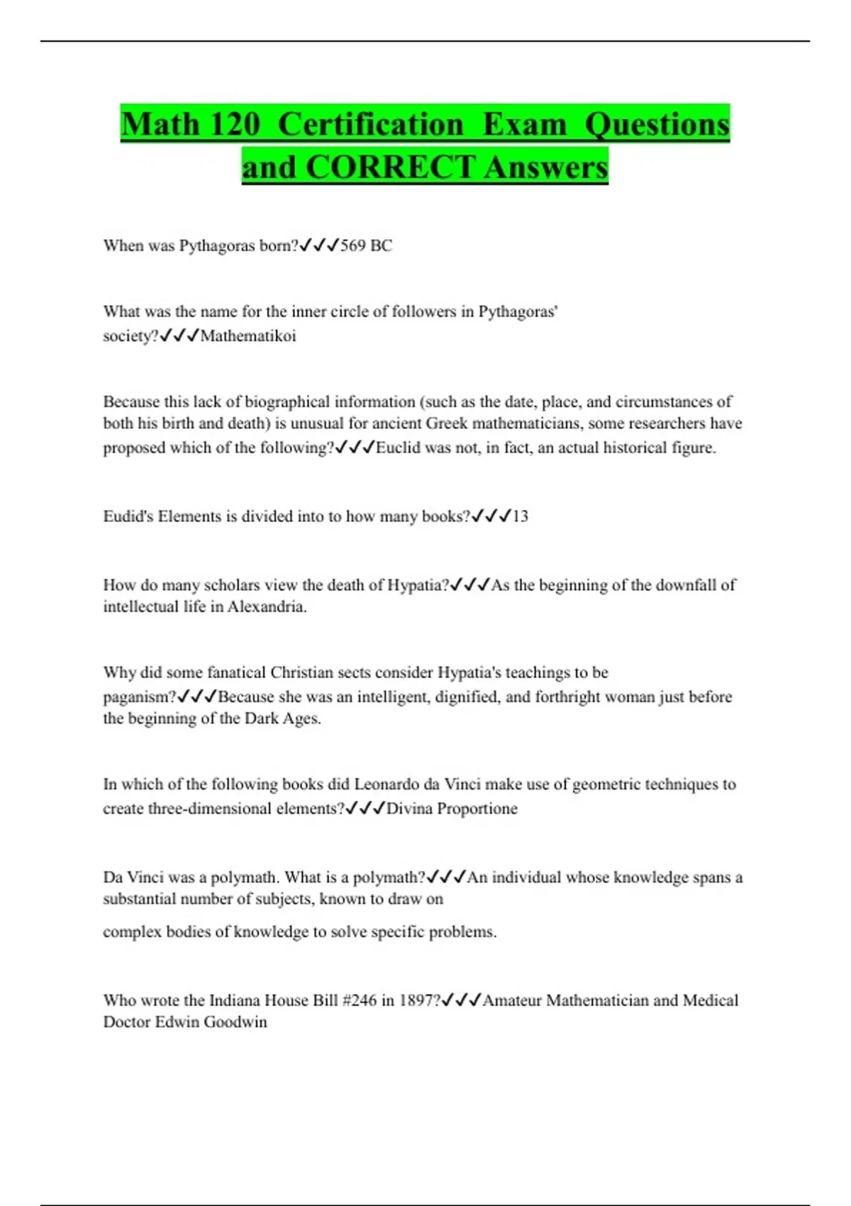 Math 120 Bundled Exam Questions and CORRECT Answers