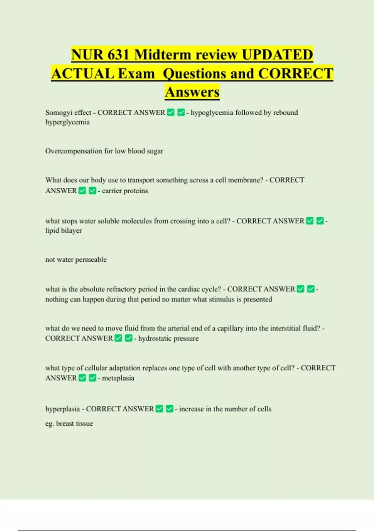 NUR631 Bundled Exam Questions and CORRECT Answers