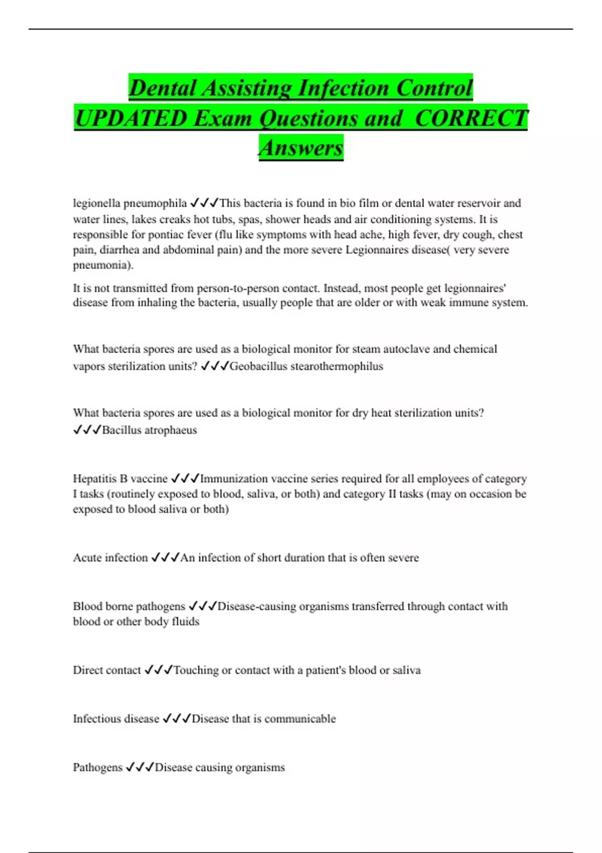 Dental Assisting Bundled Exam Questions and CORRECT Answers