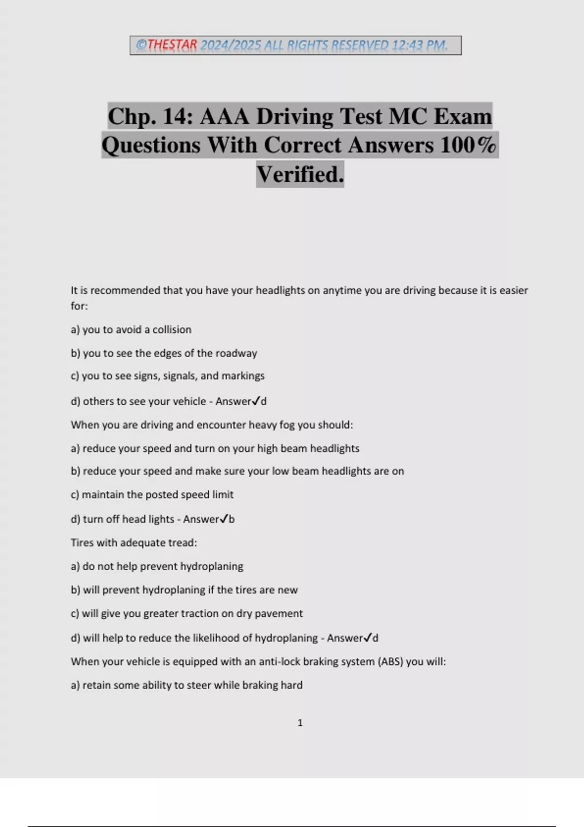 AAA How to Drive Final Exam Questions With Correct Answers 100% Verified.