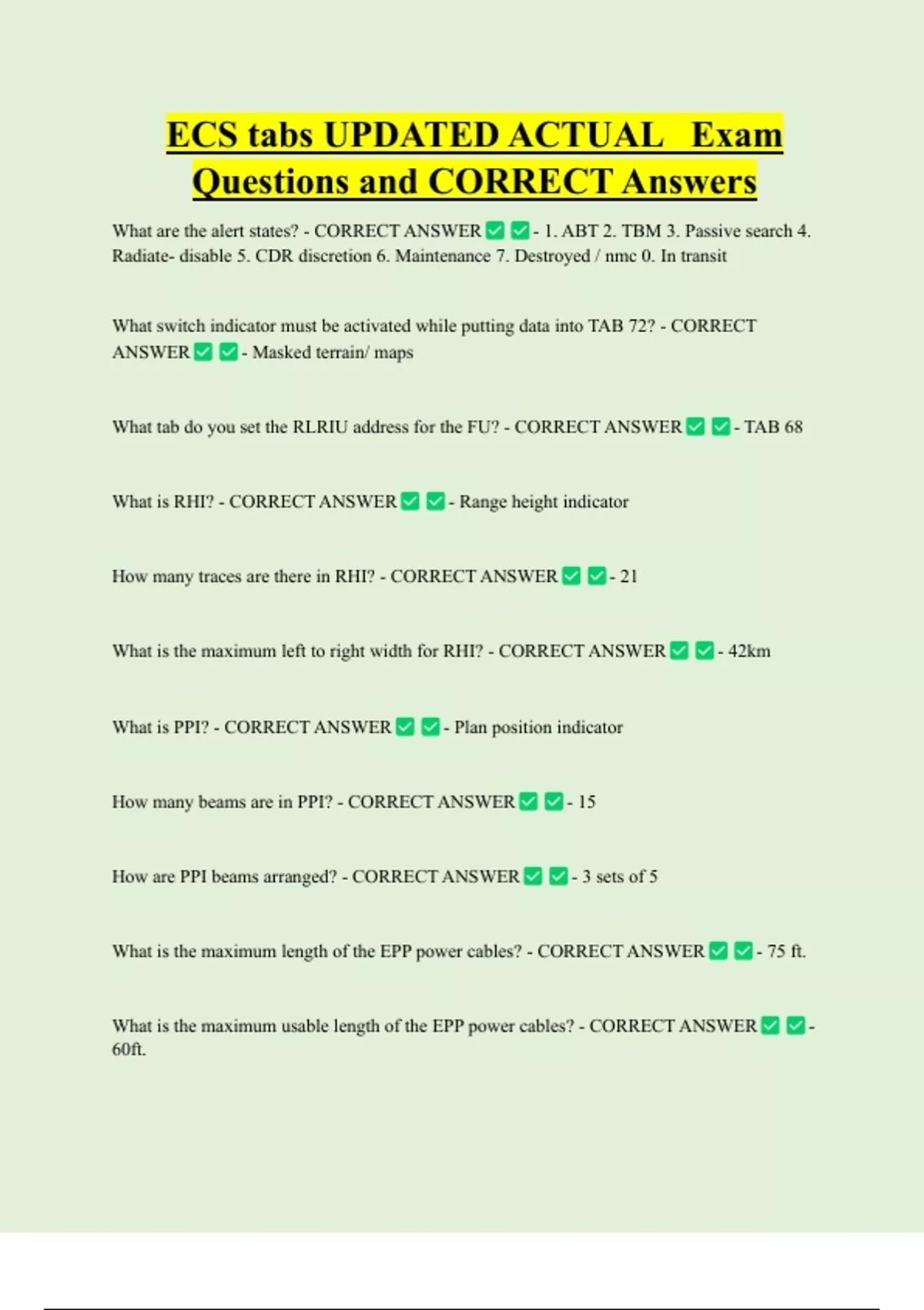 ECS tabs Bundled Exam Questions and CORRECT Answers