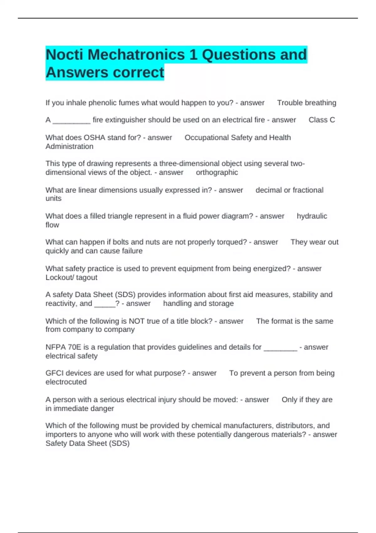 Exam (elaborations) Nocti part 1 Questions and answers Exam (elaborations) NOCTI Certificate Test Questions and Answers correct Exam (elaborations) NOCTI Questions and Answers correct Exam (elaborations) Mechatronics Final Exam Questions and Answers correct Exam (elaborations) 35 questions nocti review and Answers correct Exam (elaborati