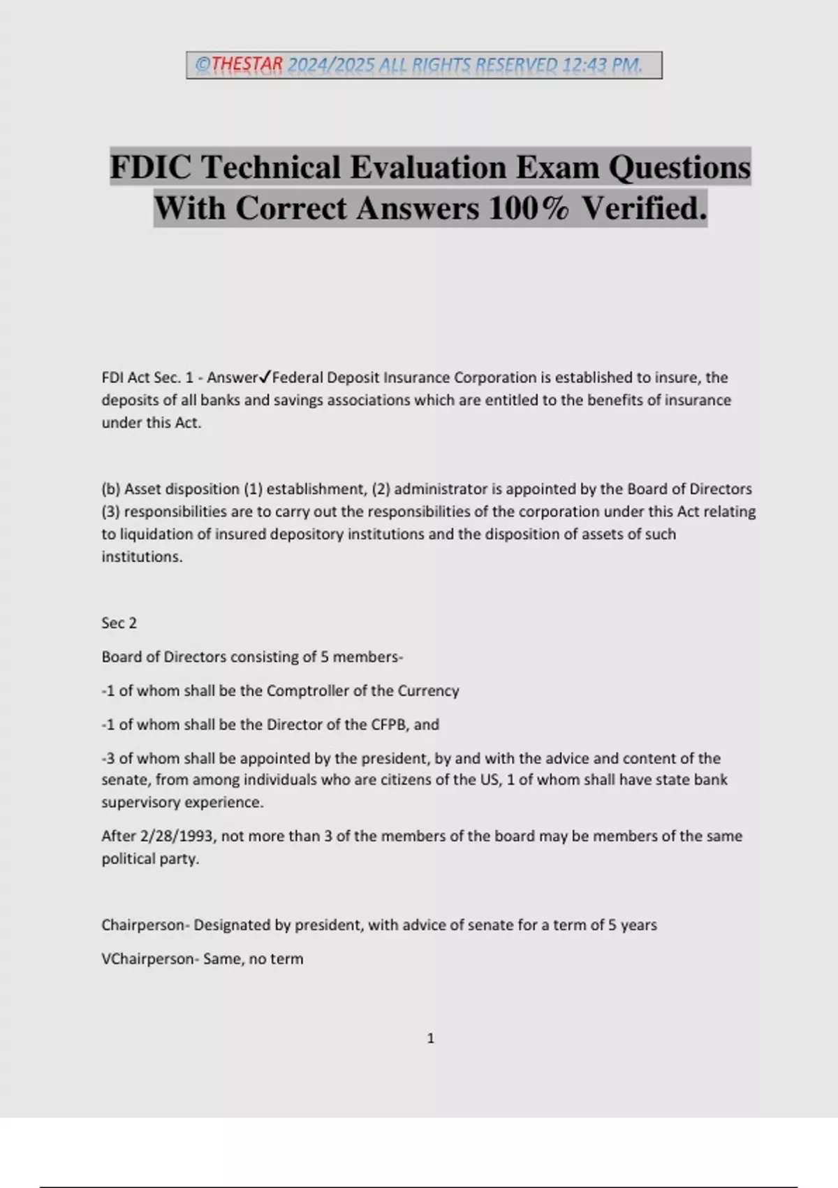 FDIC Technical Evaluation Exam Questions With Correct Answers 100% Verified