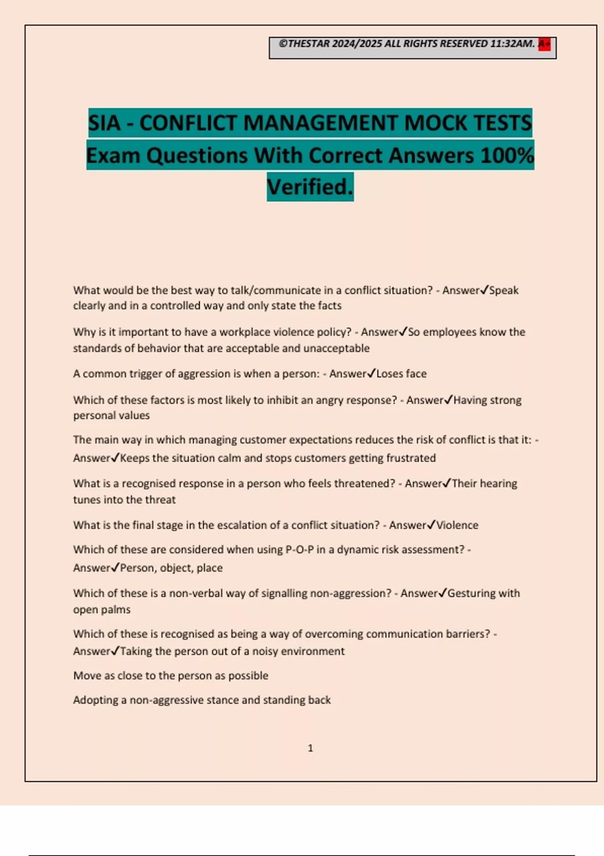 SIA - CONFLICT MANAGEMENT MOCK TESTS Exam Questions With Correct Answers 100% Verified.