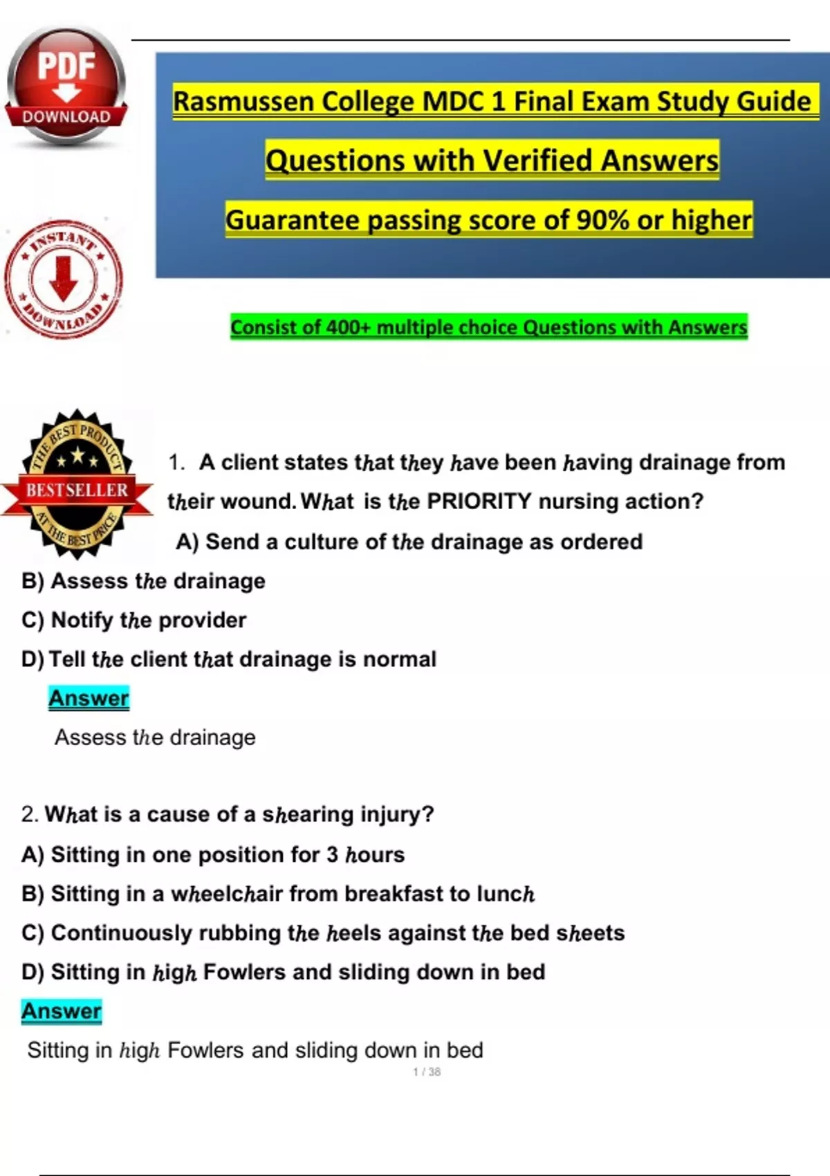 Rasmussen College MDC 1 Final Exam Review Questions with Verified Answers (2025 / 2026) 100% Verified Answers