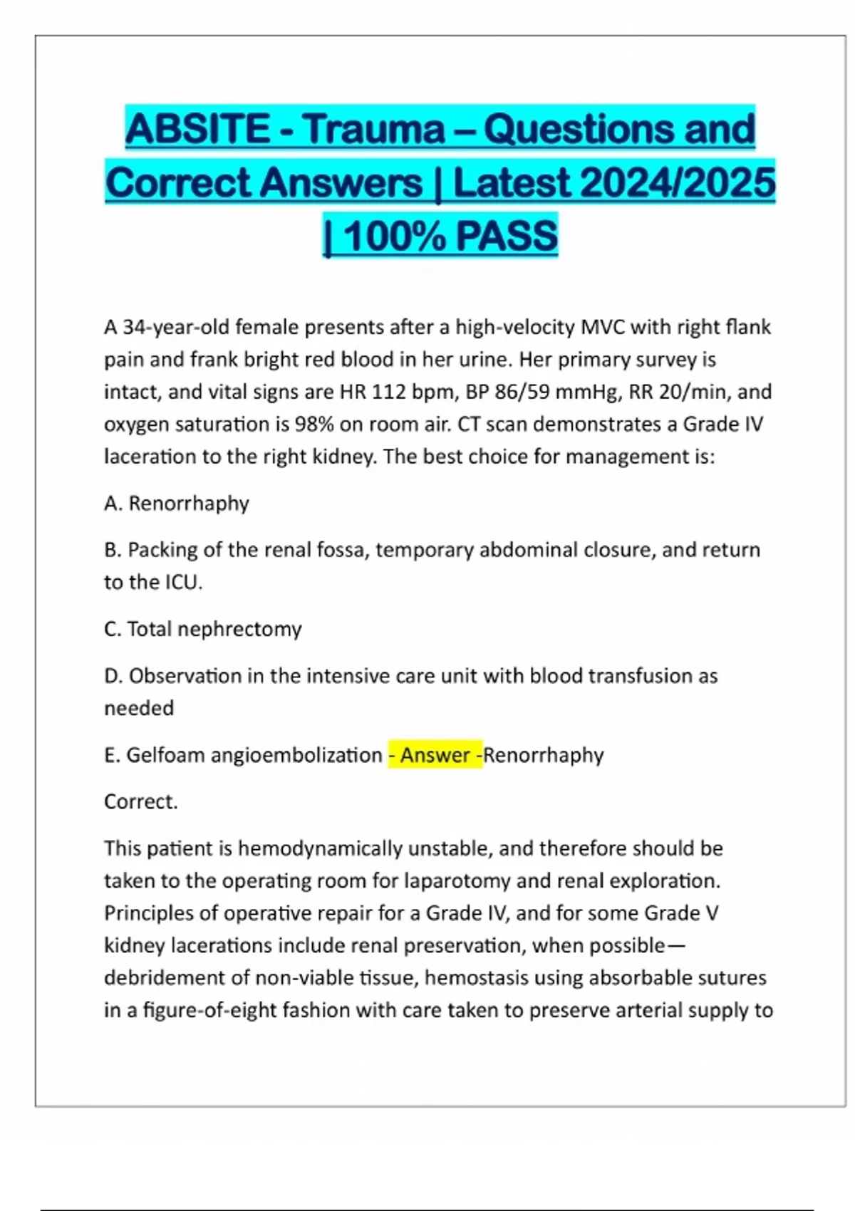 ABSITE PACKAGE DEAL EXAMS | QUESTIONS AND CORRECT ANSWERS | LATEST UPDATE 2024/2025