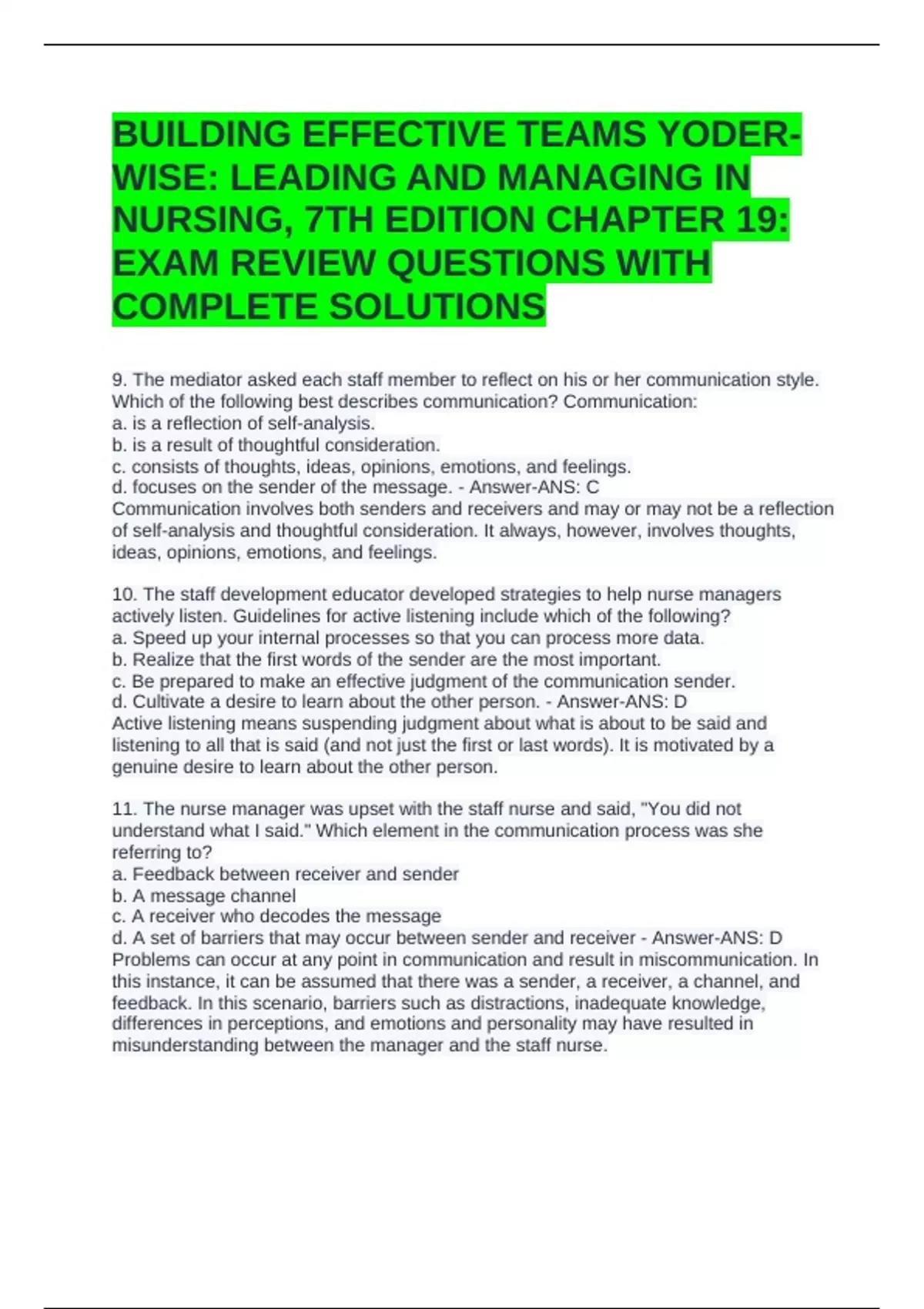 Exam (elaborations) DEVELOPING THE ROLE OF MANAGER YODER-WISE: LEADING AND MANAGING IN NURSING, 7TH EDITION, CHAPTER 30: THE STRATEGIC PLANNING PROCESS, CHAPTER 28: DEVELOPING THE ROLE OF LEADER YODER-WISE: LEADING AND MANAGING IN NURSING, 7TH EDITION EXAM QUESTIONS AND ANSW Exam (elaborations) DELEGATING: AUTHORITY, ACCOUNTABILITY, RESPONSIBILI