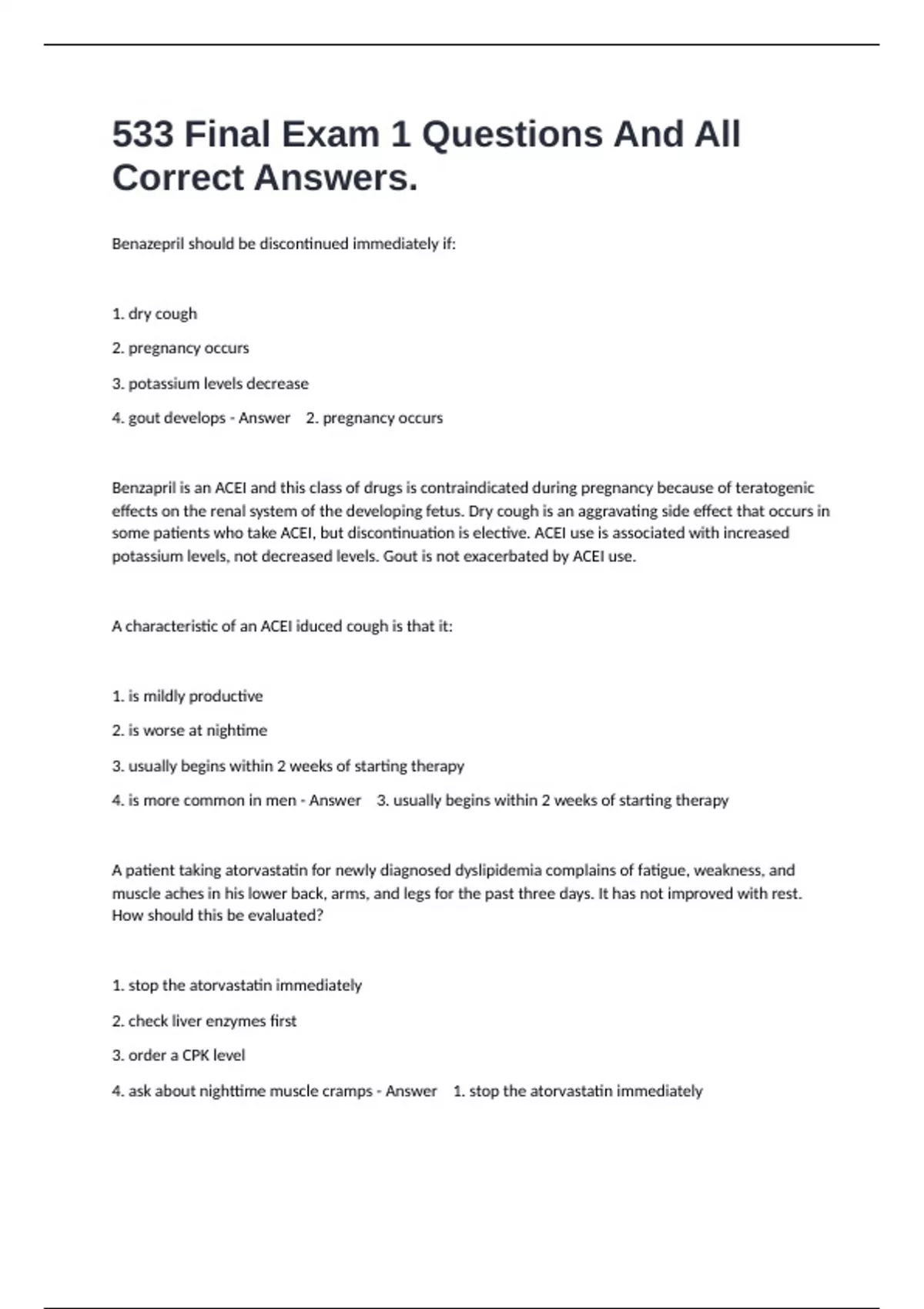 1 Exam (elaborations) 533 Exam 3 Latest Questions And All Correct Answers. 2 Exam (elaborations) NUR533: Exam 2 Practice Questions And Already Passed Answers. 3 Exam (elaborations) NUR 533 Study Guide Exam Questions And Actual Answers. 4 Exam (elaborations) NUR 533 Exam 1 Review Questions And All Correct Answers.