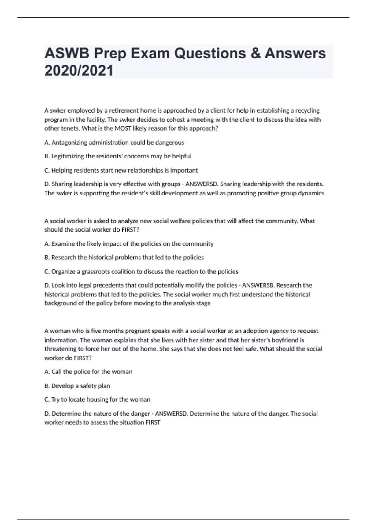 ASWB LMSW Practice Exam Questions & Answers 2024/2025