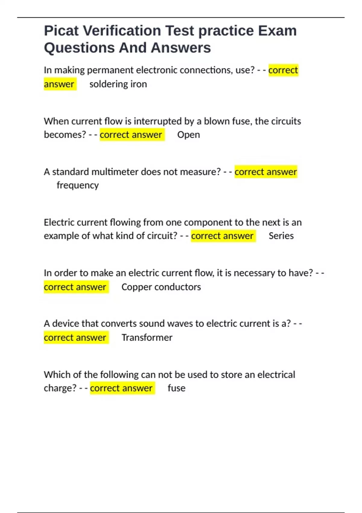 Picat- Electronics Information Exam Questions And Answers Latest Update.docx PiCAT Electronics Exam Questions And Answers Latest Update.docx PiCAT Confirmation Test Exam Questions And Answers Latest 2025.docx Math picat Test Verification Exam Questions And Answers Latest 2025.docx PICAT PRE-ASVAB GO NAVY EXAM QUESTIONS AND ANSWERA LATEST 2025.docx