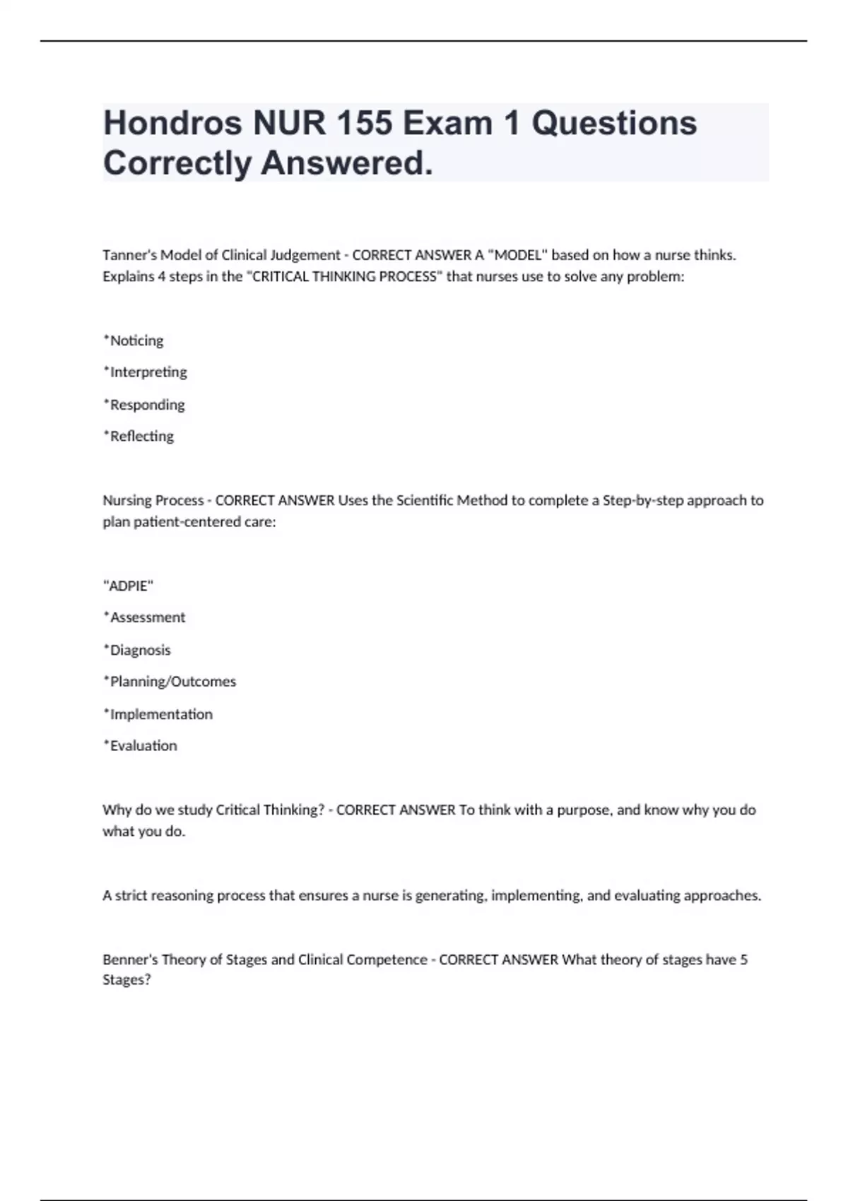 HONDROS NURSING EXAM SOLUTION PACK.ALL QUESTIONS CORRECTLY ANSWERED.