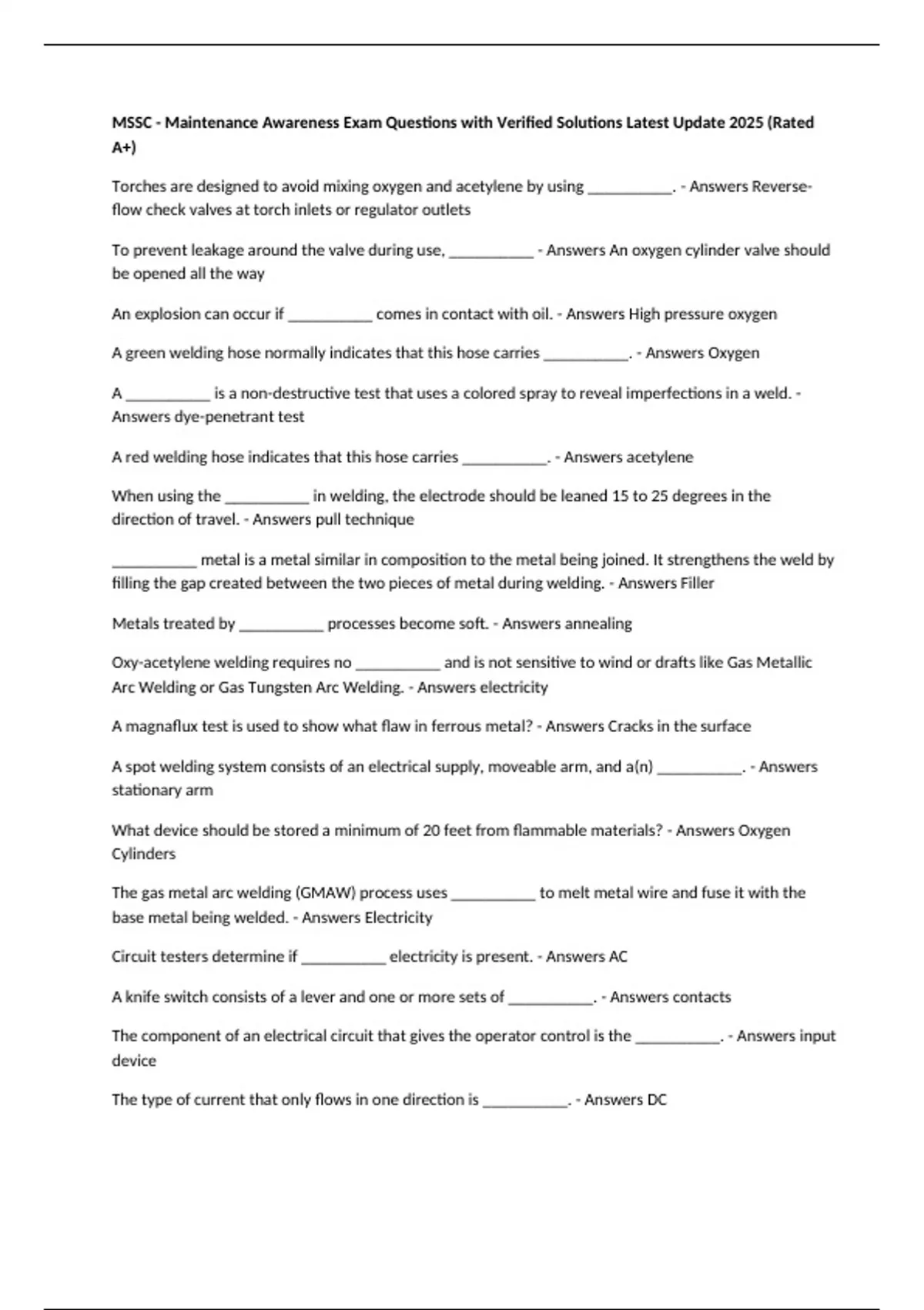 MSSC - Maintenance Awareness Exam Questions and Answers Latest Update 2025