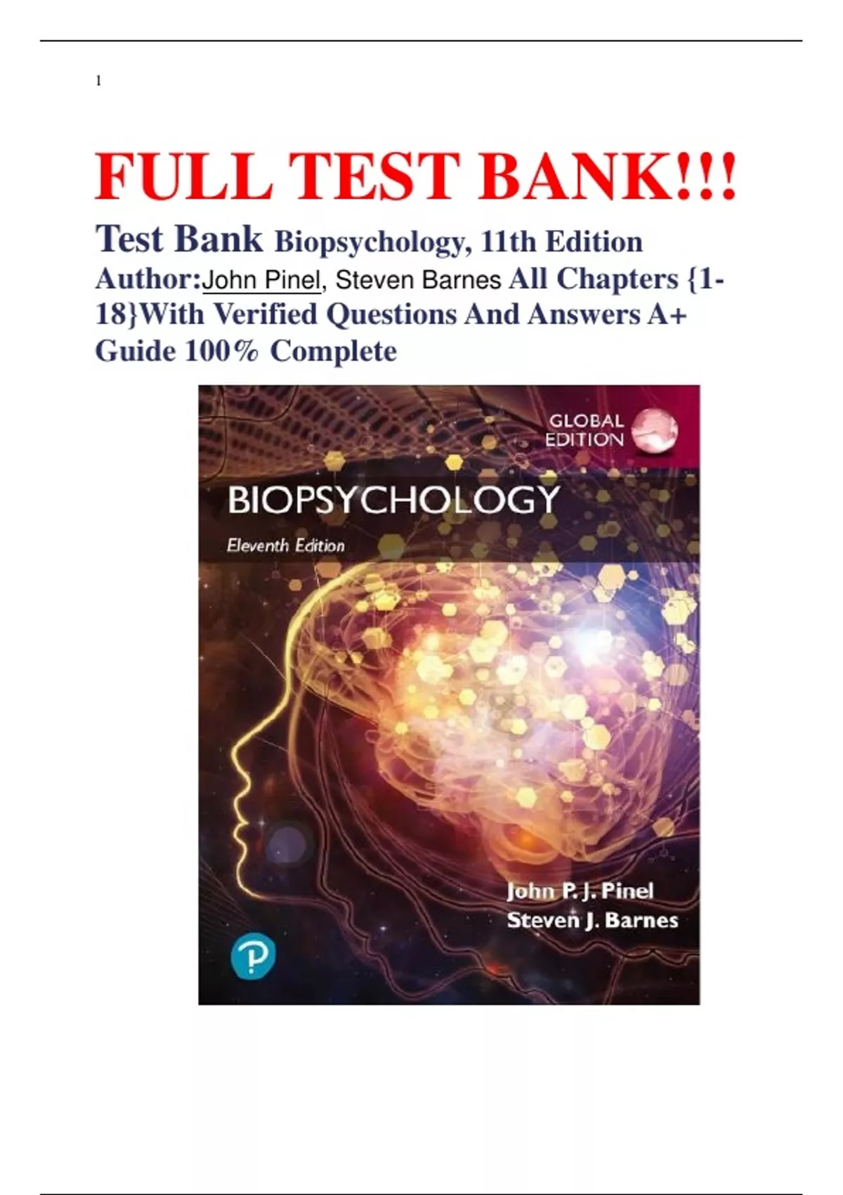 Test Bank For Biological Psychology 14th Edition Author:James W.Kalat With Verified Questions And Answers 100% Complete A+ Grade Latest Version Test Bank Biopsychology, 11th Edition Author:John Pinel, Steven Barnes All Chapters {1-18}With Verified Questions And Answers A+ Guide 100% Complete Test Bank Biopsychology, 11th Edition Author:Jo