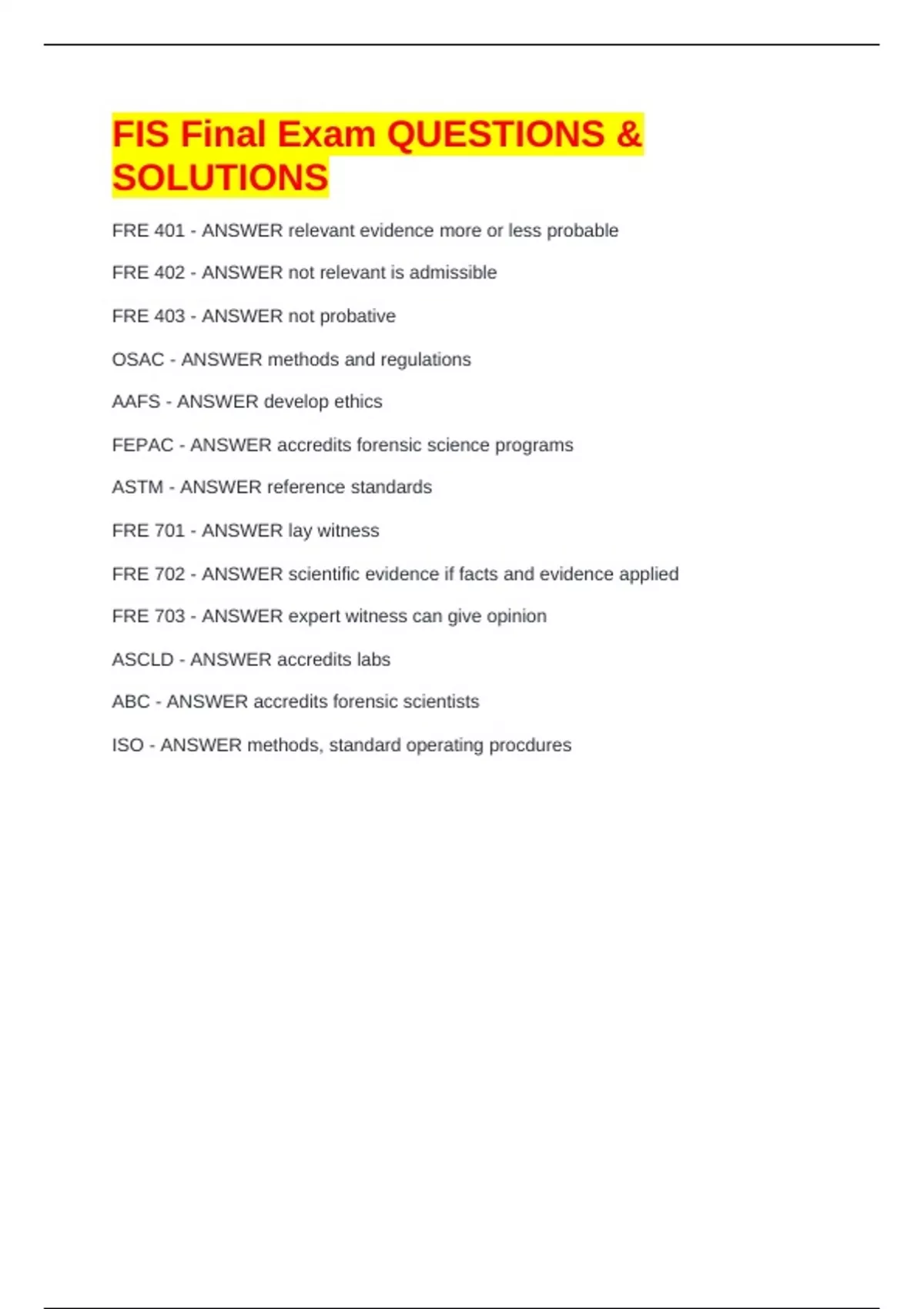 FIS Final Exam Complete Questions & Solutions(RATED A+)EXAM BUNDLE