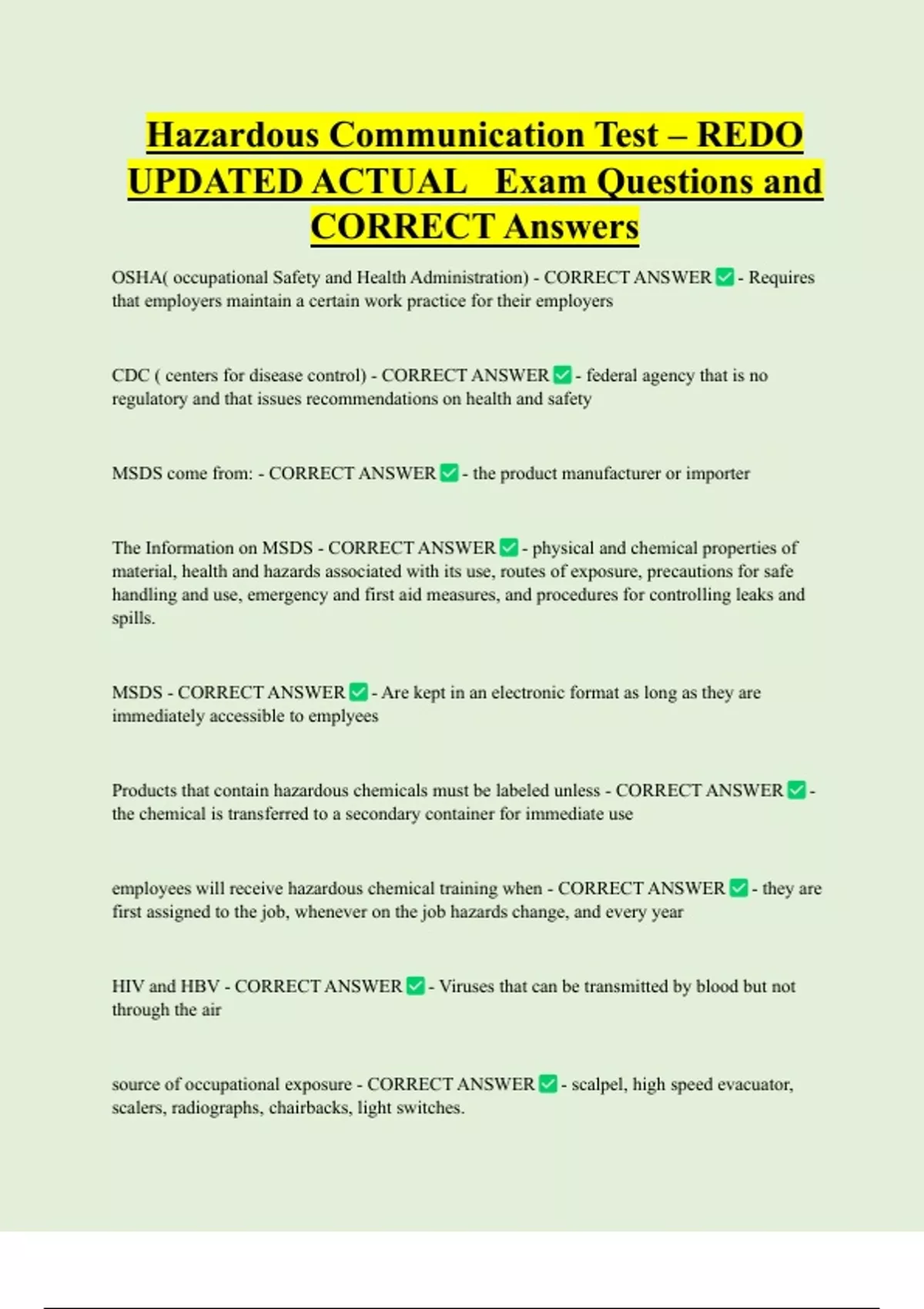 Hazard Communication Bundled Exam Questions and CORRECT Answers