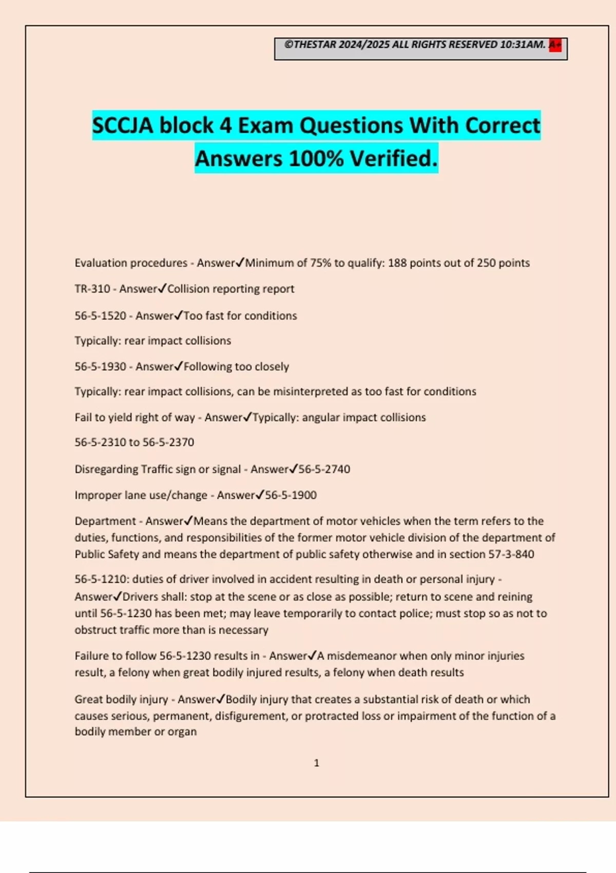 Block 1 SCCJA Exam Questions With Correct Answers 100% Verified.