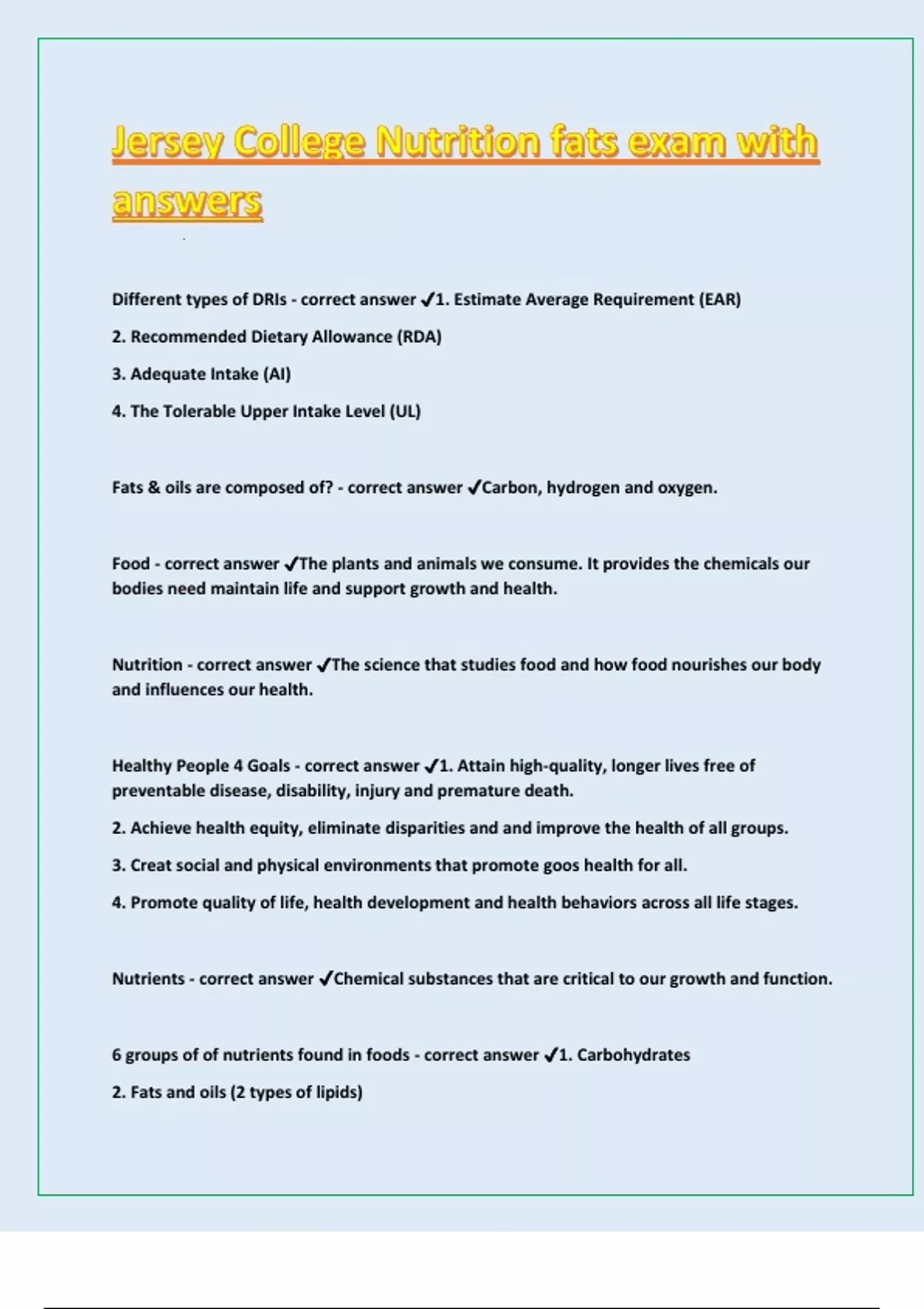 JERSEY COLLEGE NUTRITION FINAL REVIEW QUESTIONS WITH ANSWERS