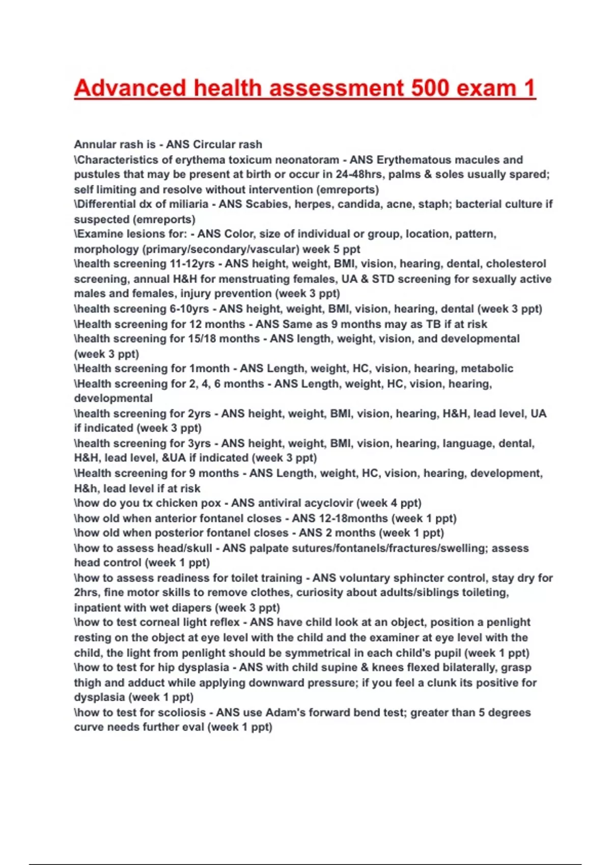 Advanced health assessment 500 exam 1 2025/2026 Questions With Completed & Verified Solutions.