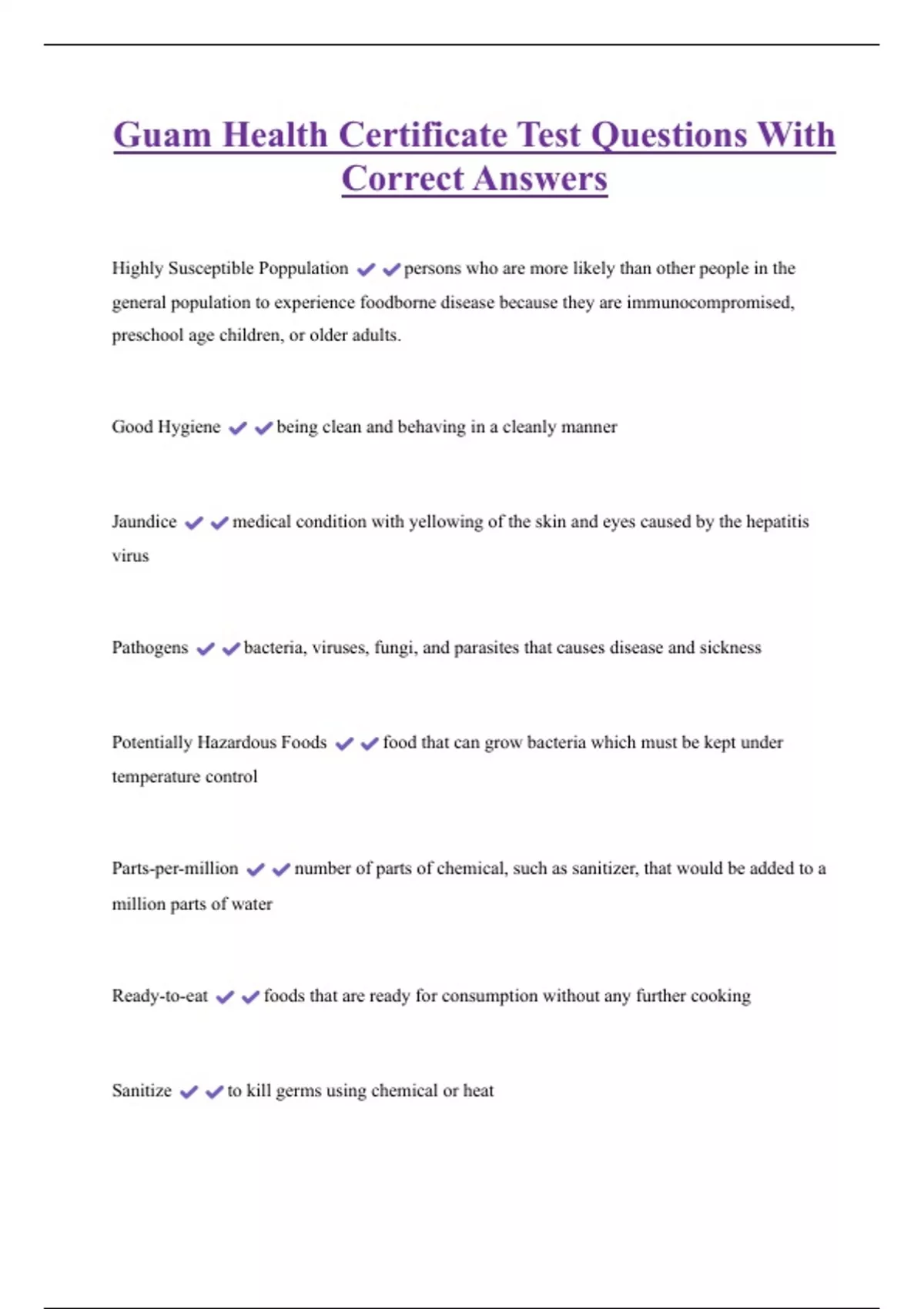 Guam Health Certificate Test Questions With Correct Answers 2 Exam (elaborations) Guam Chauffeur s License Study Guide Questions With Solutions 3 Exam (elaborations) Guam Permit Test Questions With Correct Answers 4 Exam (elaborations) Guam Drivers Written Test Questions With Correct Answers