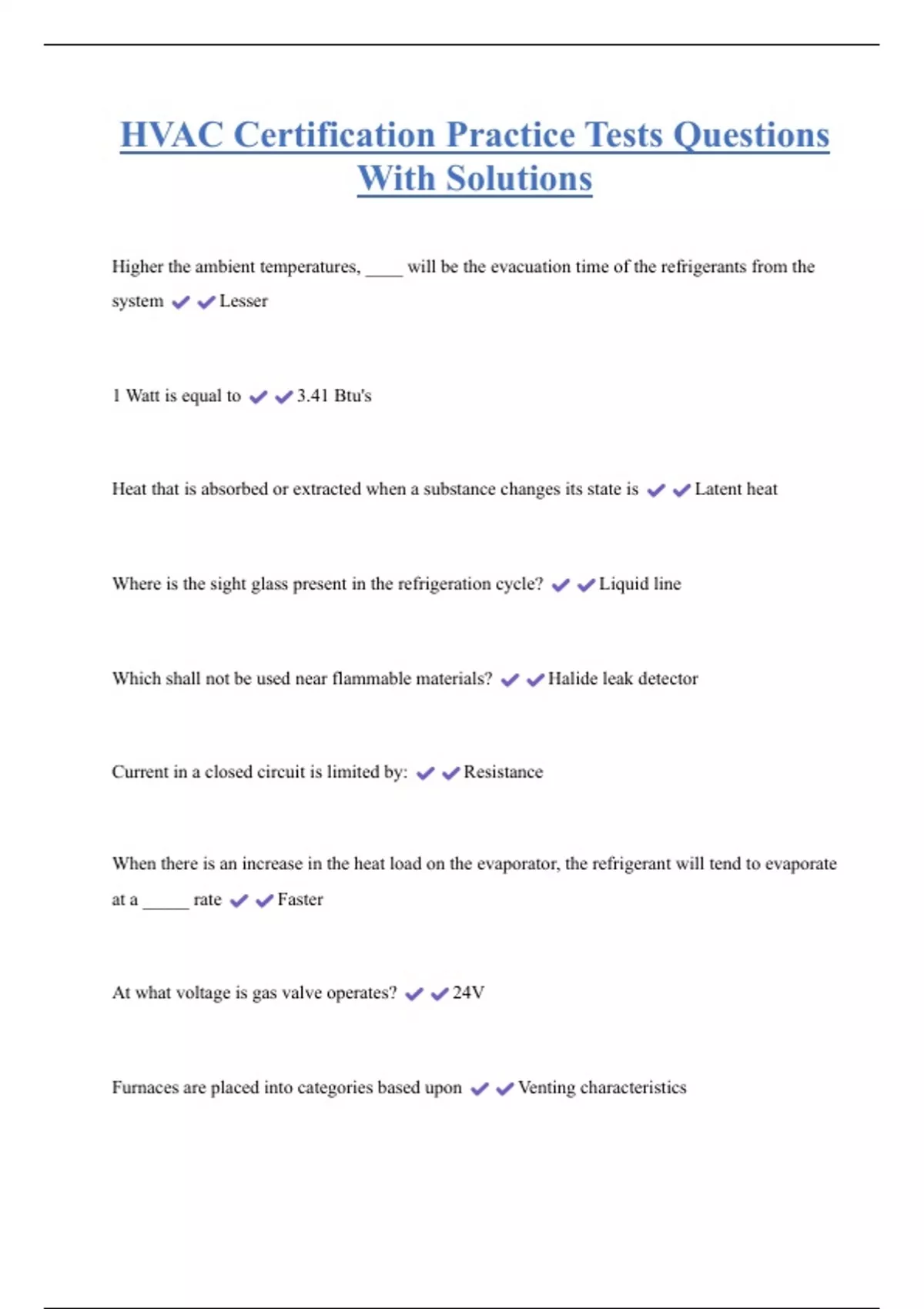 Hvac Employment Readiness Exam Questions With Correct Answers 2 Exam (elaborations) HVAC Certification Practice Tests Questions With Solutions 3 Exam (elaborations) HVAC Refrigeration Final Practice Exam Questions With Correct Answers Graded A+ 4 Exam (elaborations) ASE HVAC Exam Practice Questions With Correct Answers