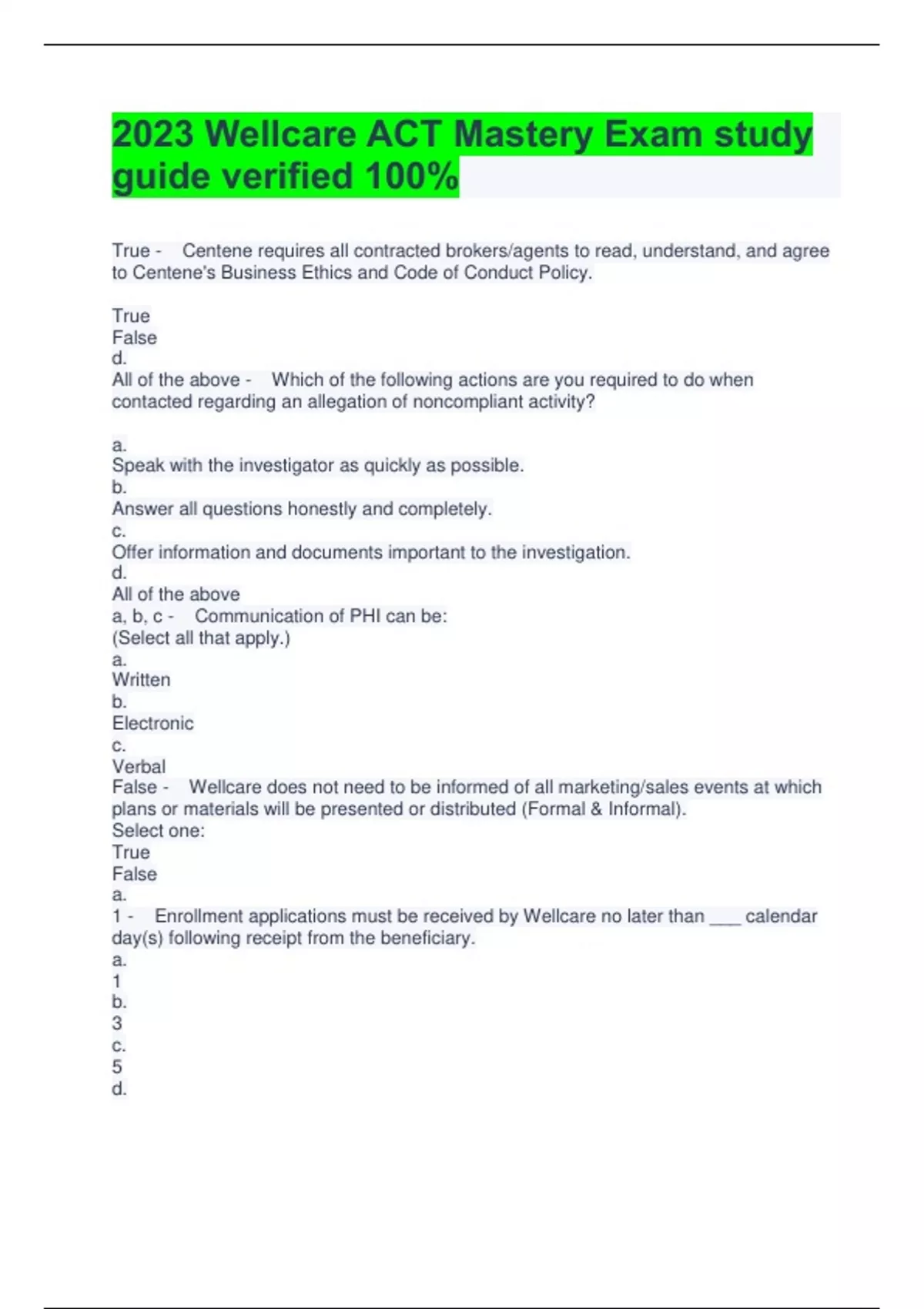 Wellcare ACT Mastery Exam study guide verified 100% bundle correct set documents for your study