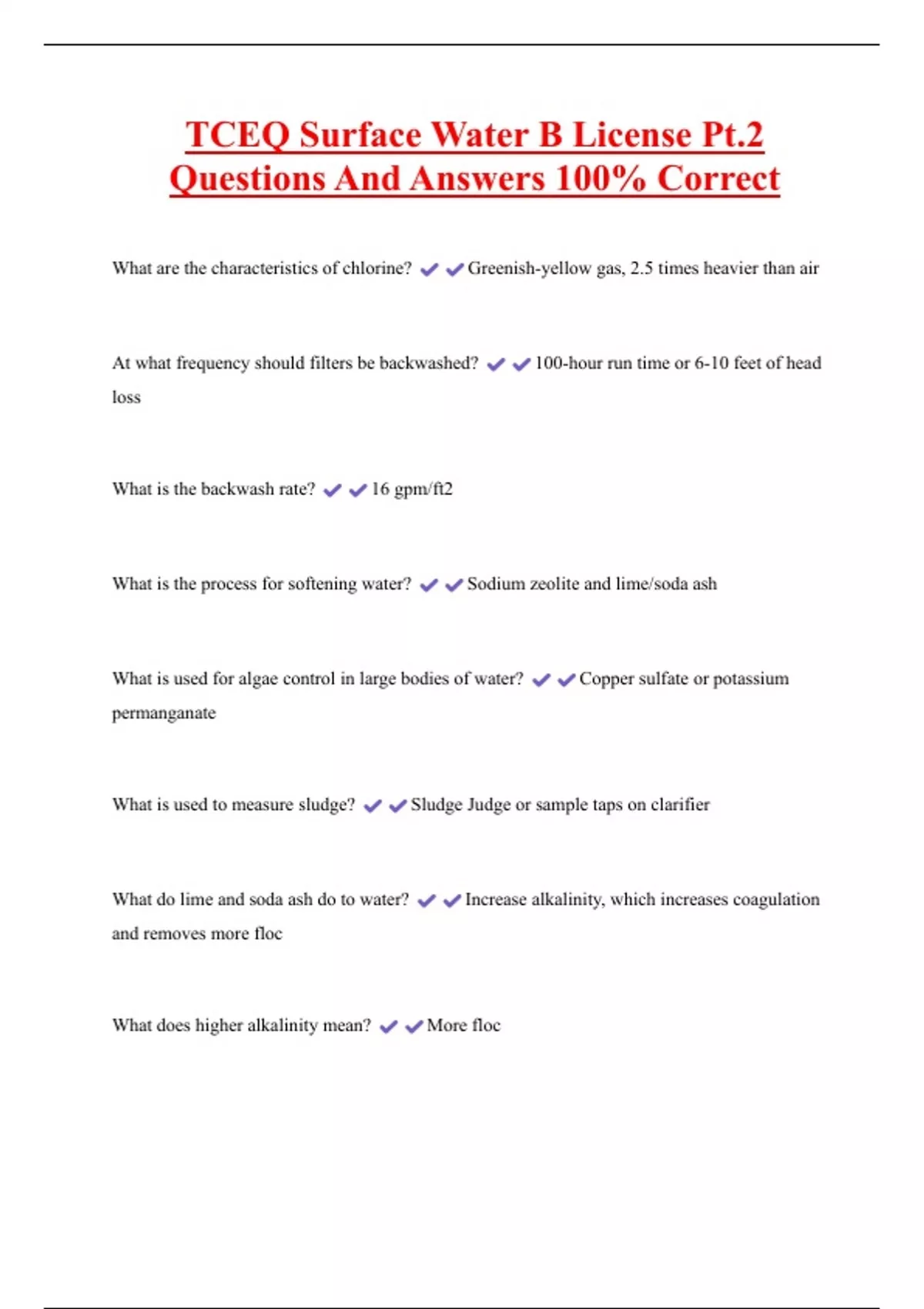 TCEQ Surface Water B License Pt.2 Questions And Answers 100% Correct 2 Exam (elaborations) TCEQ Class A Prep Part 1 Questions And Answers Graded A+