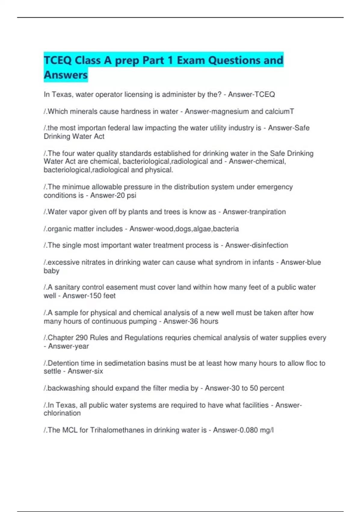 1 Exam (elaborations) TCEQ Study Guide Questions with Correct Answers 2 Exam (elaborations) TCEQ Class A prep Part 1 Exam Questions and Answers 3 Exam (elaborations) TCEQ D Wastewater Exam Questions and Answers 4 Exam (elaborations) TCEQ Irrigator Exam Questions with Correct Answers 5 Exam (elaborations) TCEQ Irrigator (backflow) Exam Questions