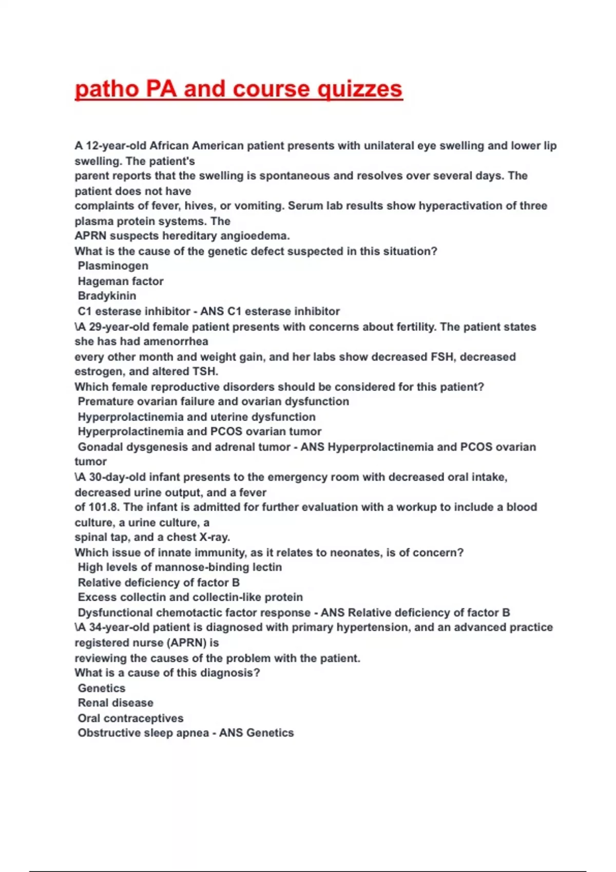 patho PA and course quizzes Exam 2025/2026 Questions With Completed & Verified Solutions.
