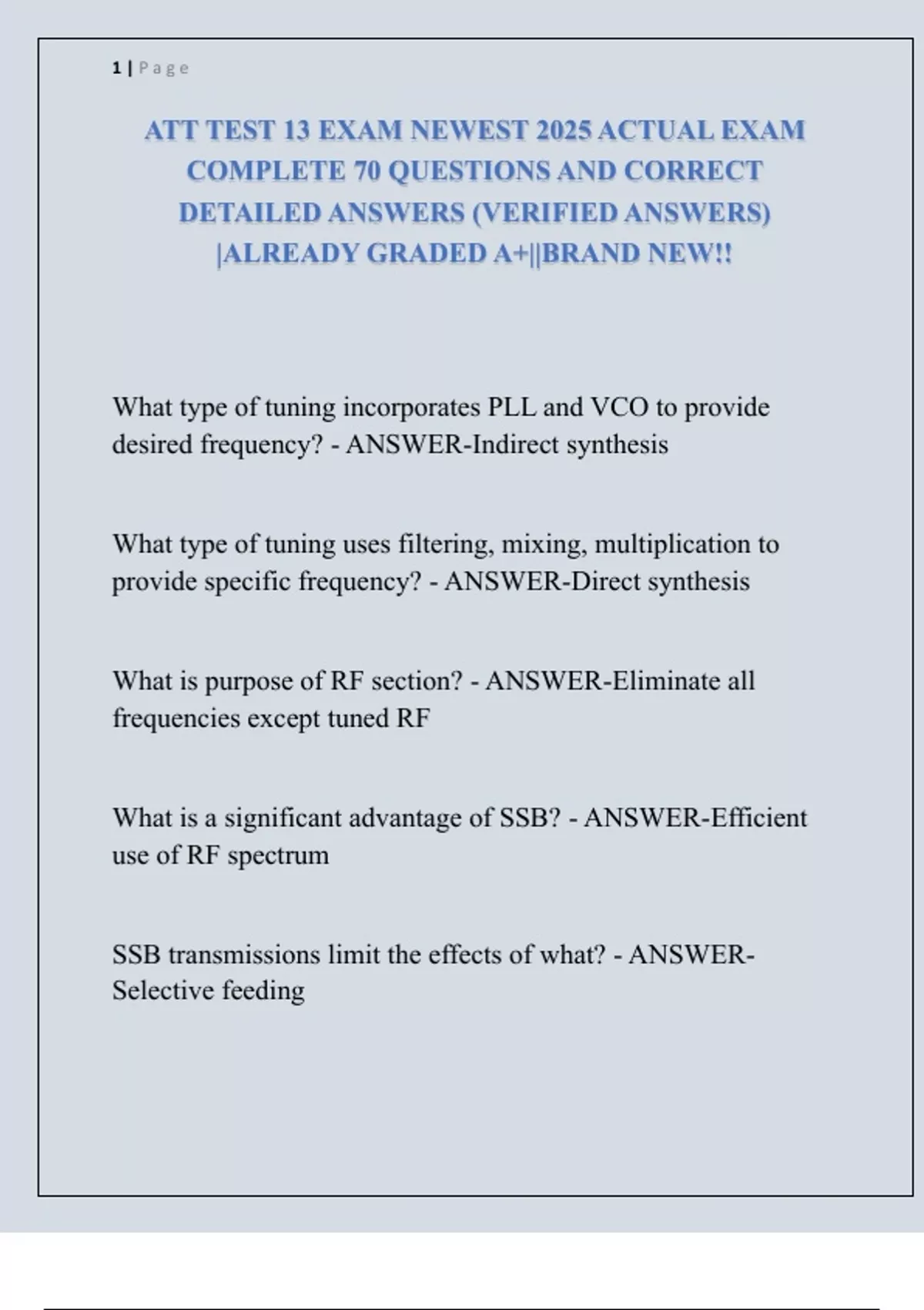 ATT TEST 1 EXAM NEWEST 2025 ACTUAL EXAM COMPLETE 100 QUESTIONS AND CORRECT DETAILED ANSWERS (VERIFIED ANSWERS) |ALREADY GRADED A+||BRAND NEW!!
