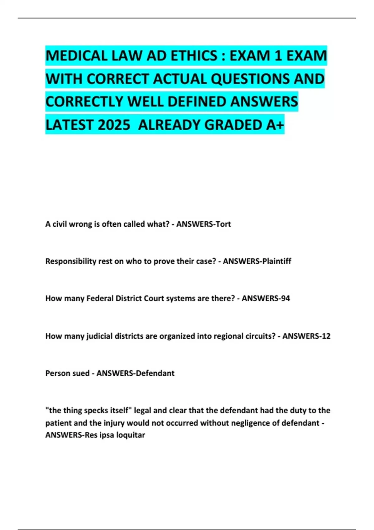BUNDLE FOR MEDICAL LAW EXAMS