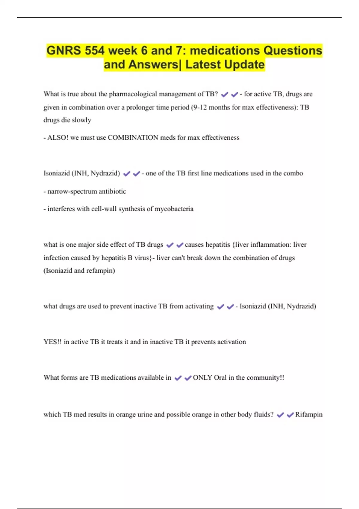 GNRS 554 week 6 and 7: medications Questions and Answers| Latest Update 2 Exam (elaborations) Med Math #1 (GNRS 554) Questions and Answers| Latest Update 3 Exam (elaborations) Respiratory Exam Review - GNRS 555 Questions and Answers| Latest Update 4 Exam (elaborations) GNRS 555 Med/Surg Care Adult/Geriatric Weeks 1-5 Questions and Answers