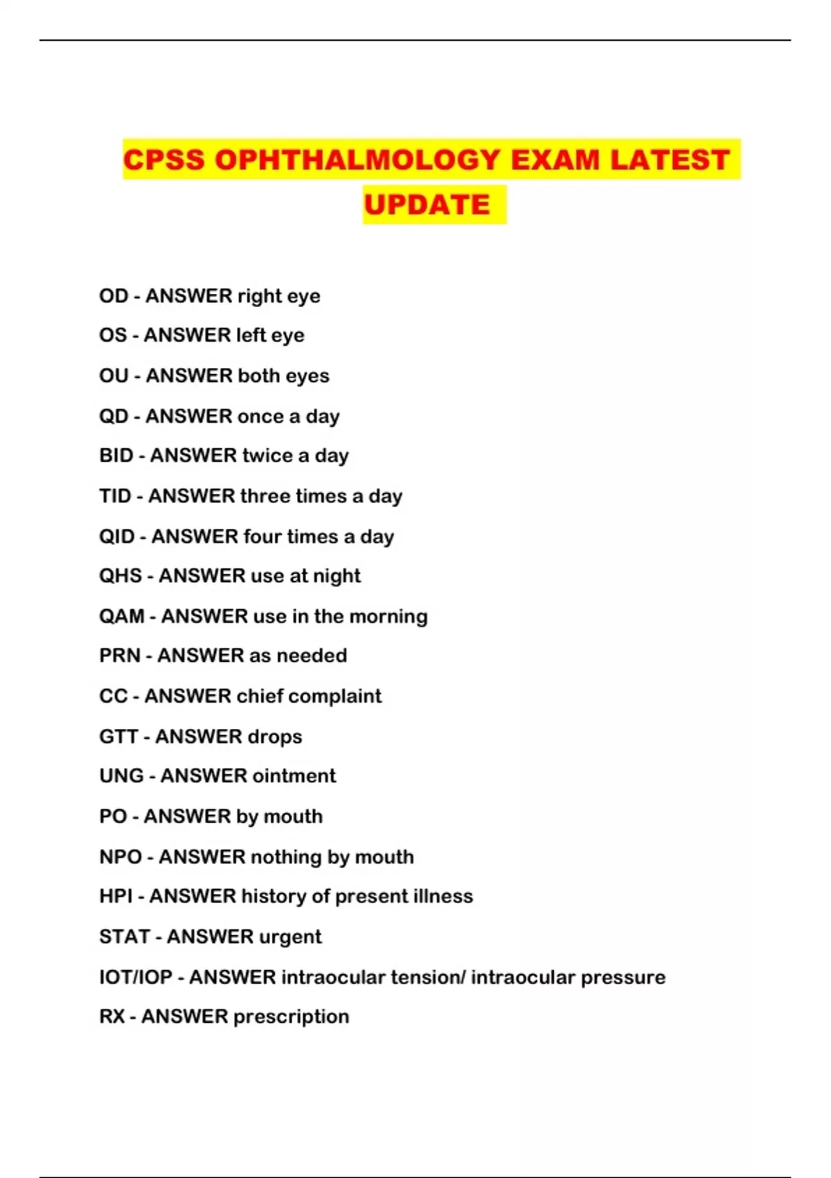 CPSS OPHTHALMOLOGY EXAM LATEST UPDATE