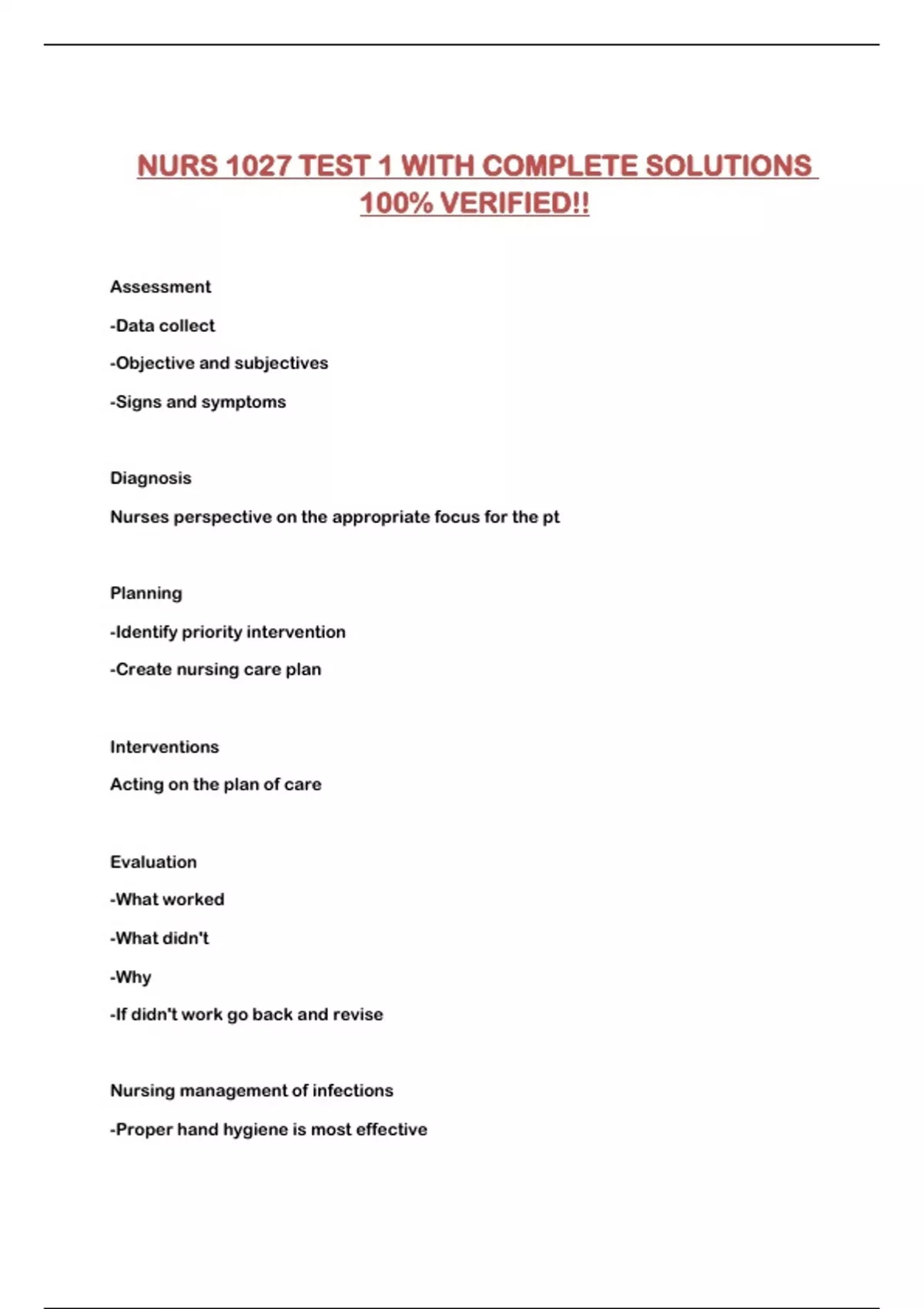 NURS 1027 TEST 1 WITH COMPLETE SOLUTIONS 100% VERIFIED!!