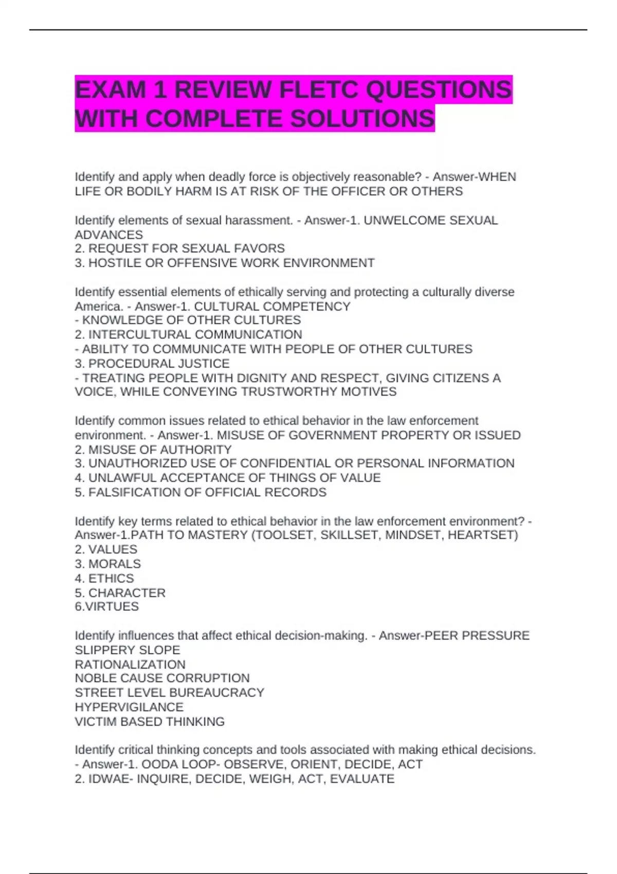 EXAM 1 REVIEW FLETC QUESTIONS WITH COMPLETE SOLUTIONS
