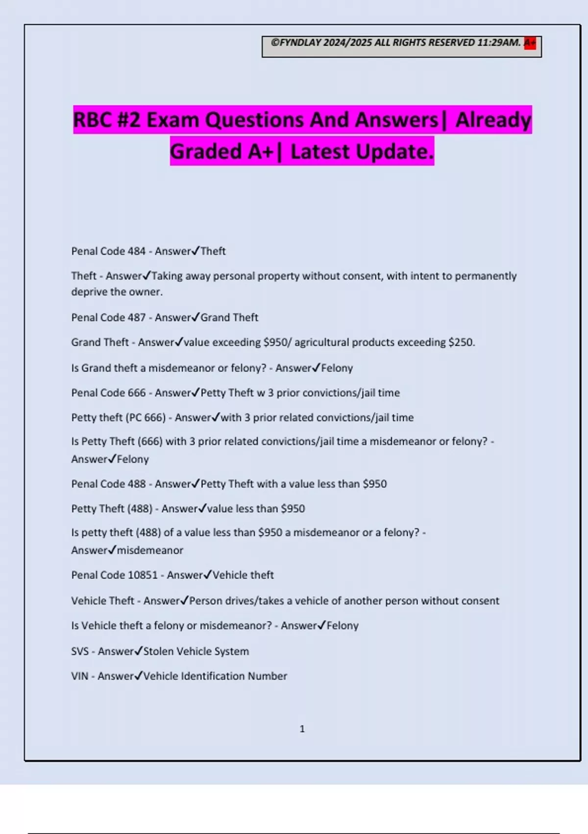 RBC #1 Exam Questions And Answers| Already Graded A+| Latest Update.