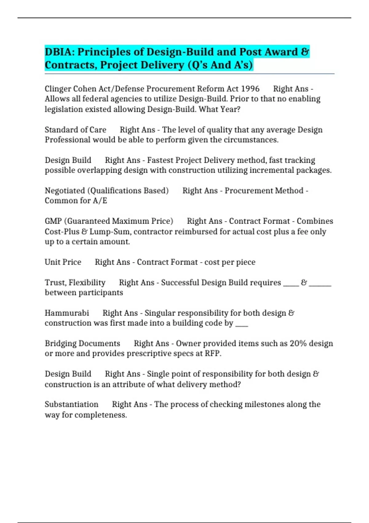 PACKAGE::- DBIA CERTIFICATION EXAMS - DESIGN BUILD INSTITUTE OF AMERICA