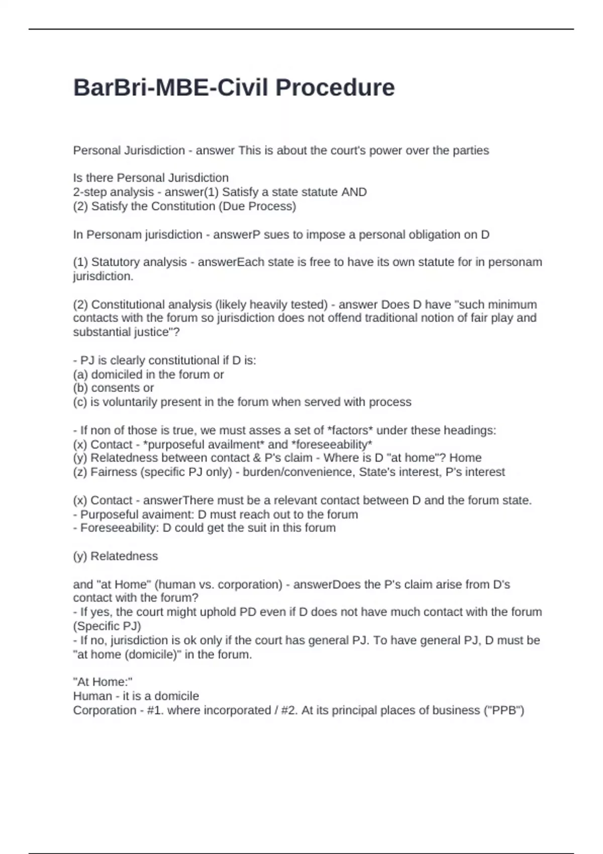 MBE civil procedure Test Compiled Bundle Latest Updated