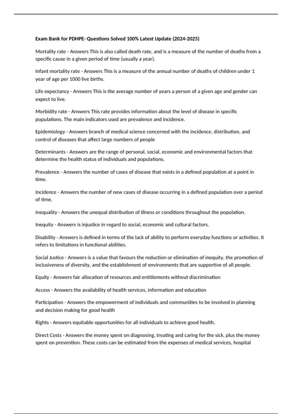 PDH Exam 2 Questions and Answers Latest Update 2025 Graded A+