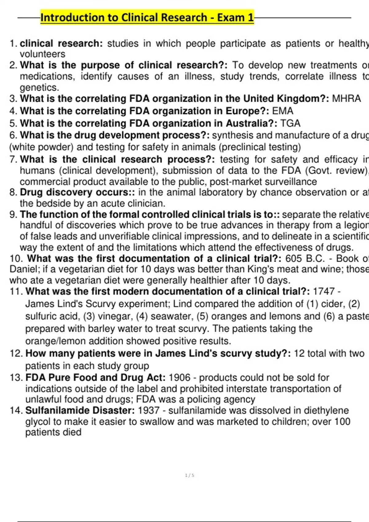 Introduction to Clinical Research Exam 1 with verified questions and answers 2025