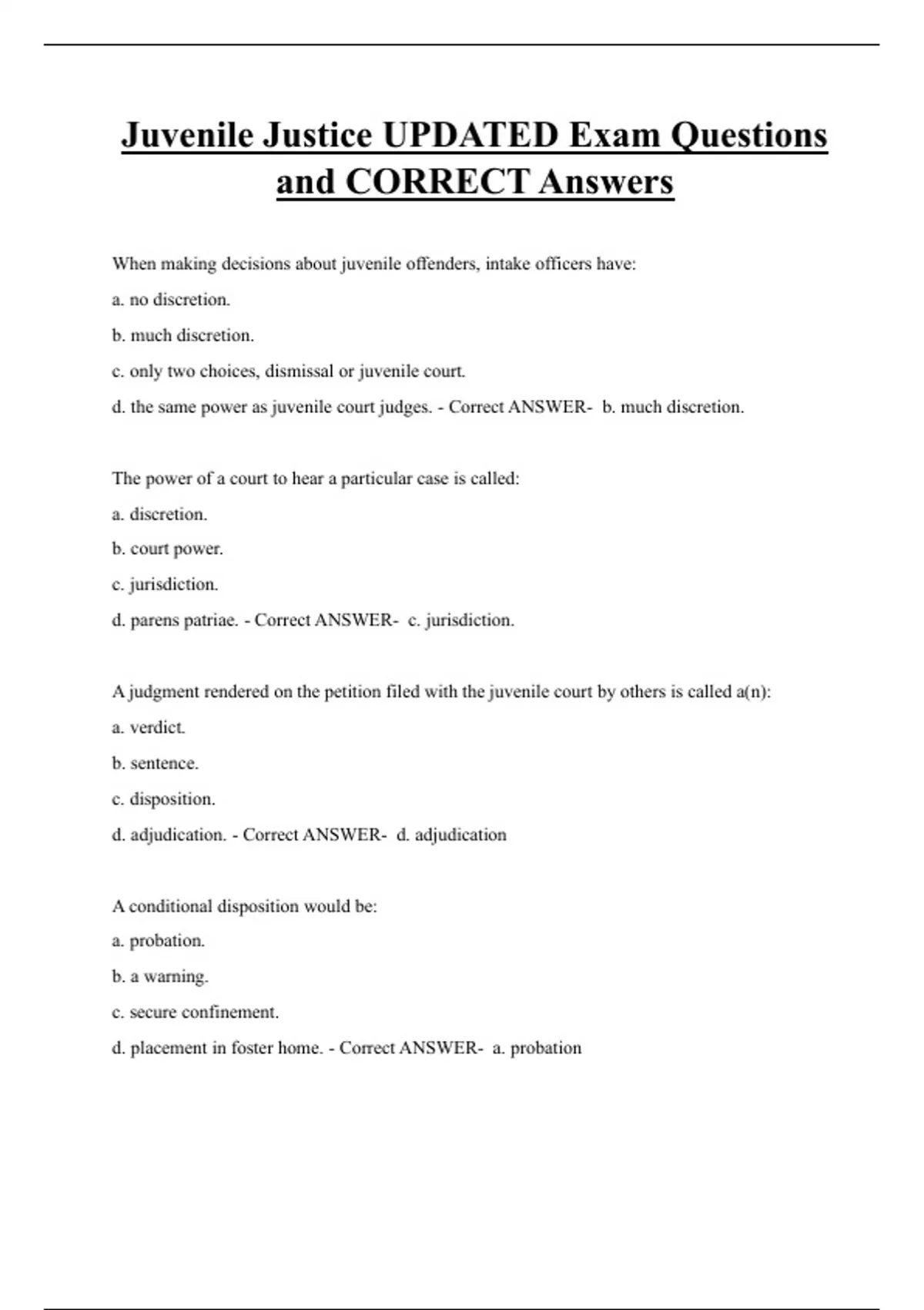 Juvenile Bundled Exam Questions and CORRECT Answers