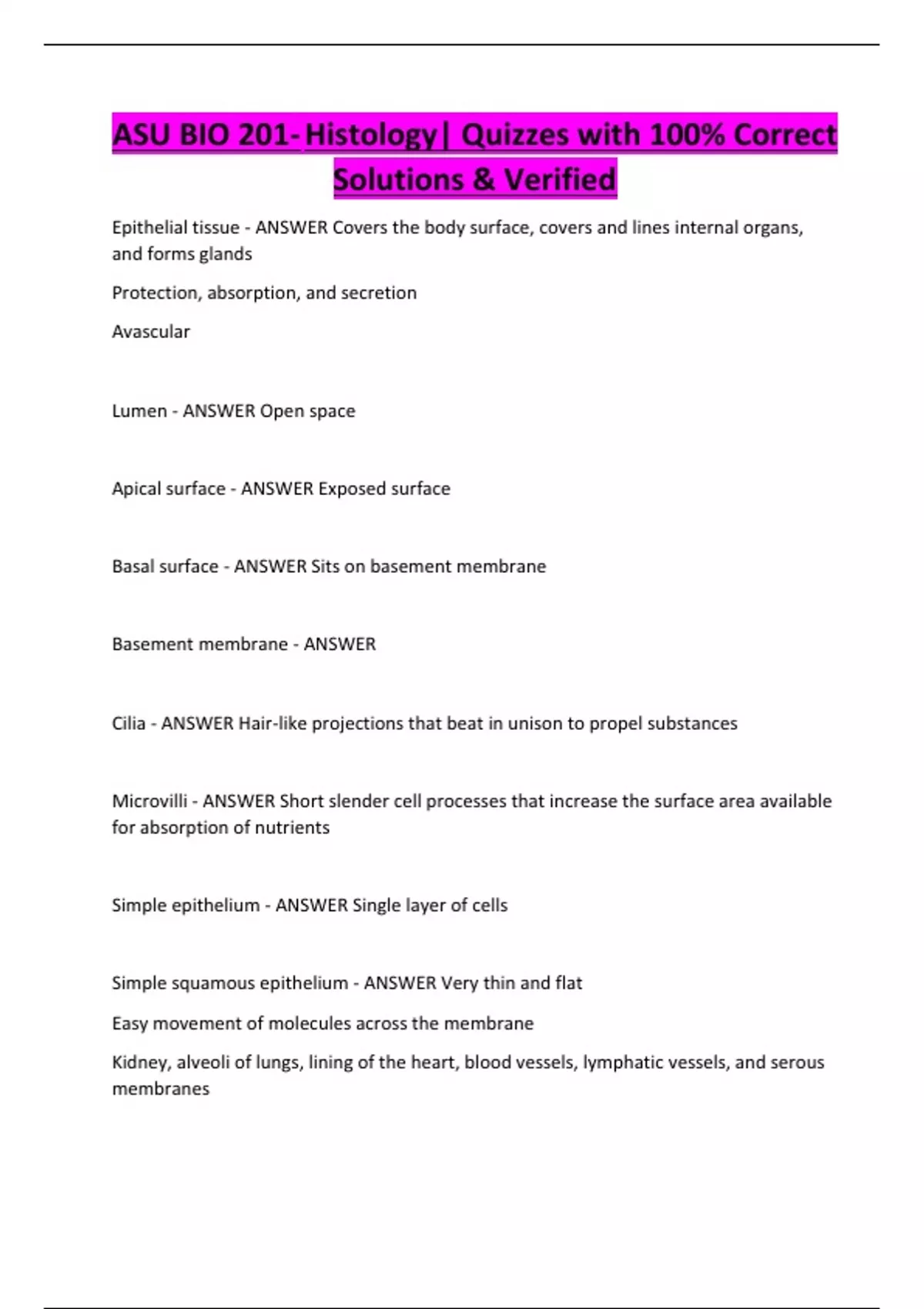 ASU BIO 201- Histology| Quizzes with 100% Correct Solutions & Verified