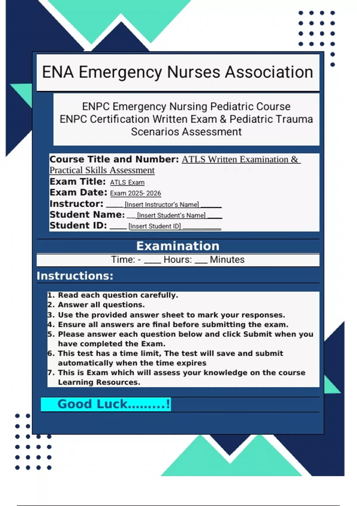 ENPC 4th & 5th Edition ENPC Emergency Nursing Pediatric Course ENPC Certification Written Exam & Practical Exam ENPC 4th Edition and ENPC 5th Edition Exam Preparation Compilation Bundle | Grades A+| 100% Pass Guarantee | Achieve Success! Invest in your success today! Your Success, Our Mission. Let's Achieve Academic Excellence Together