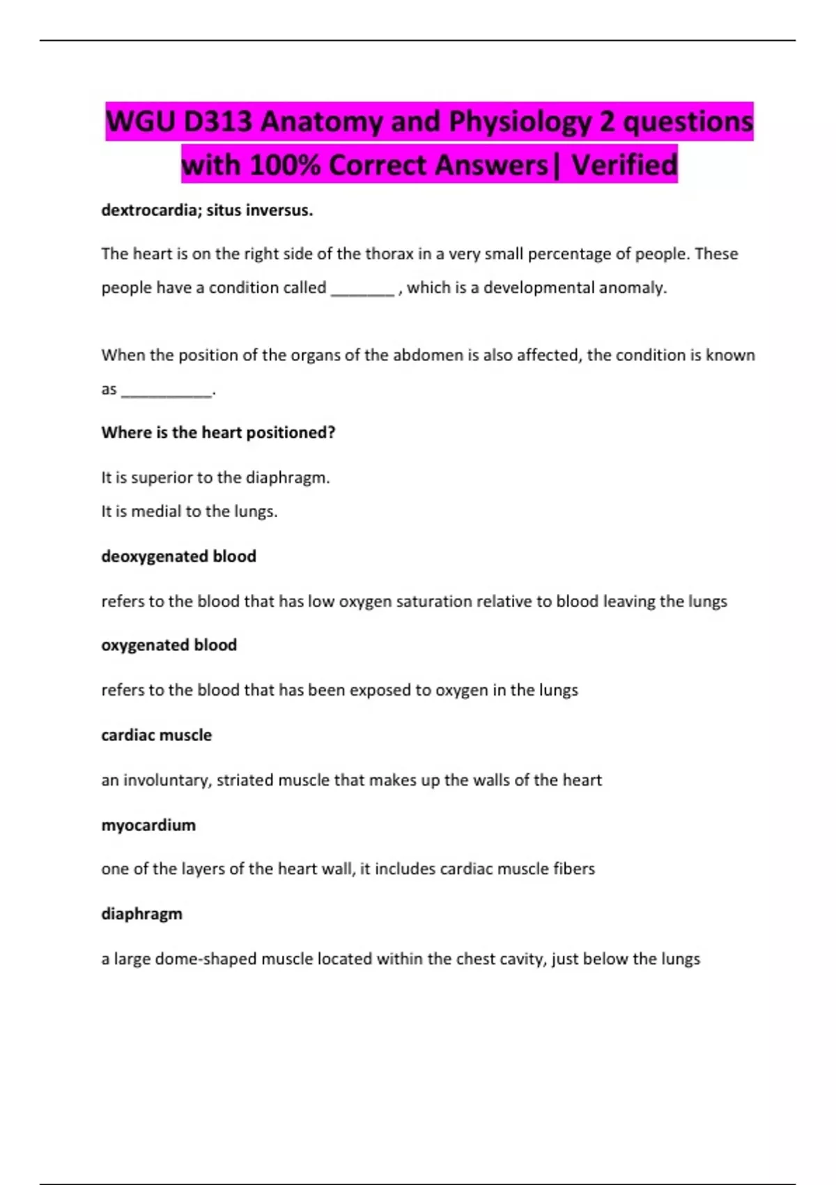 D313 Anatomy and Physiology EXAMS BUNDLE | QUESTIONS AND CORRECT ANSWERS