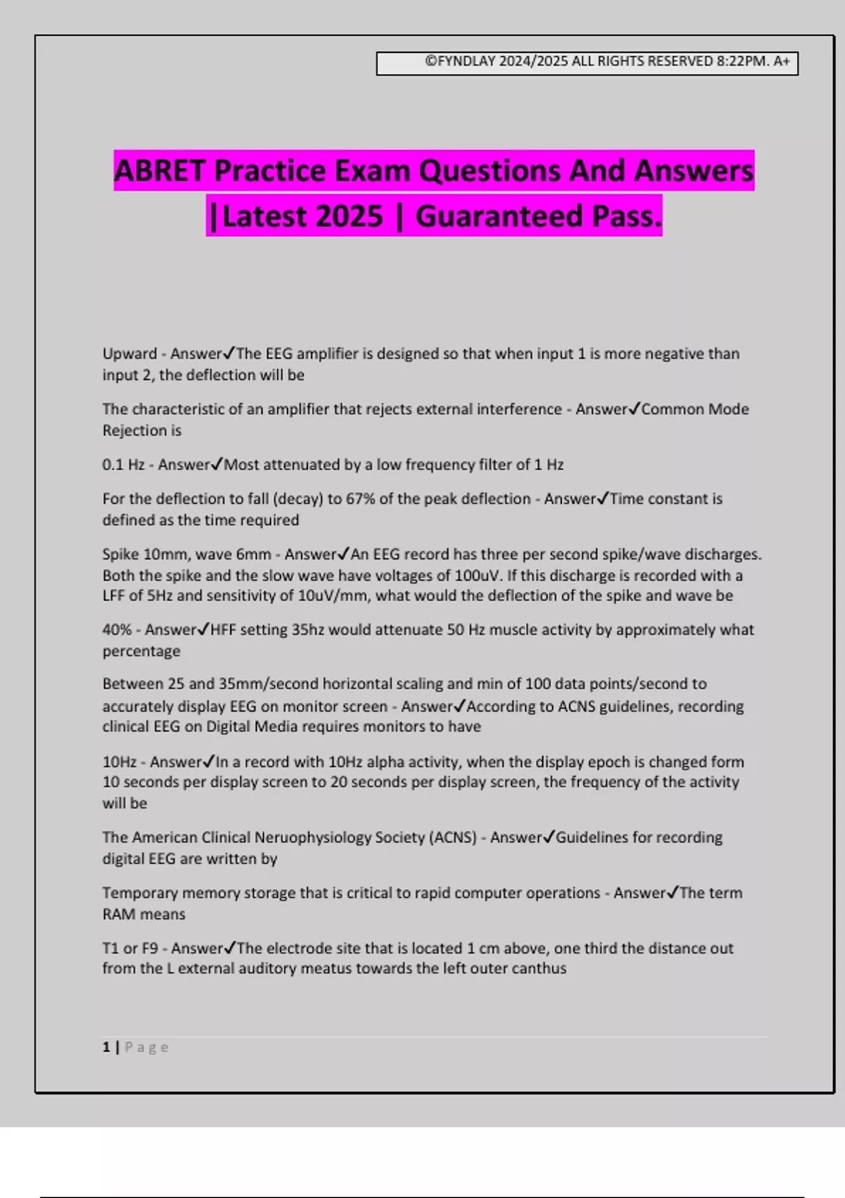 ABRET EEG TEST Exam Questions And Answers |Latest 2025 | Guaranteed Pass.