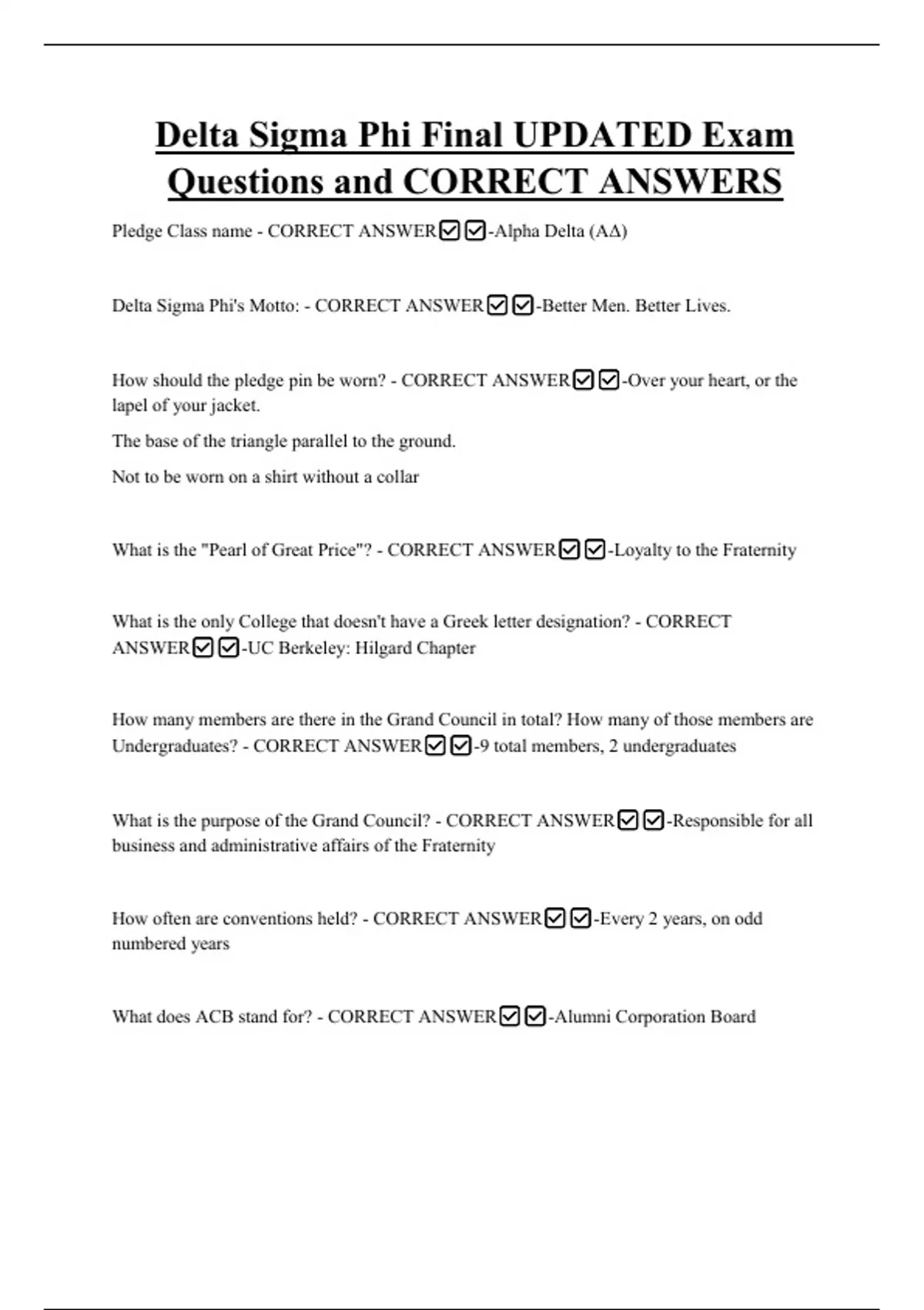 Delta Sigma Phi Final UPDATED Exam Questions and CORRECT ANSWERS